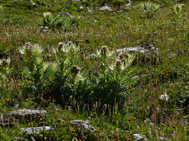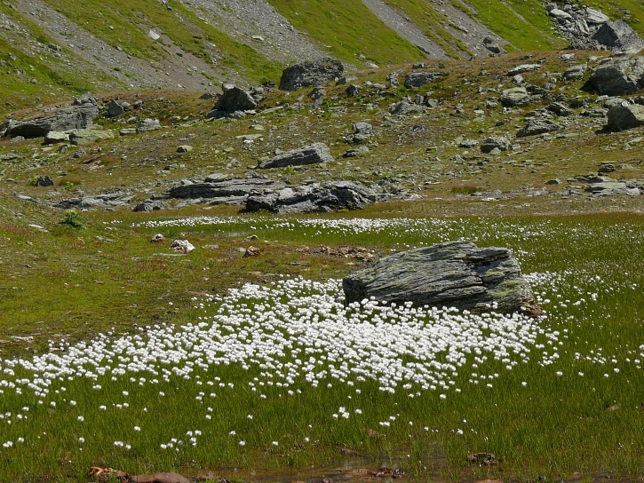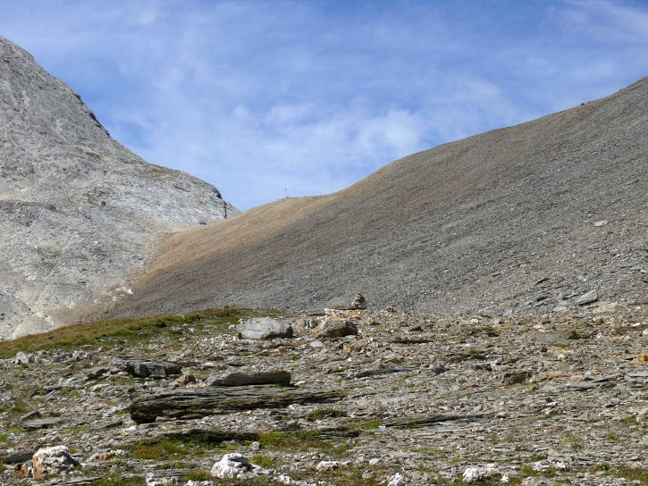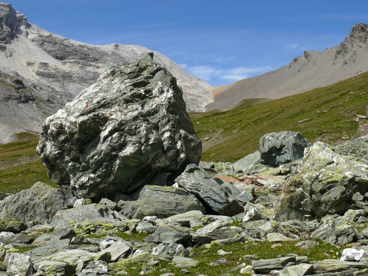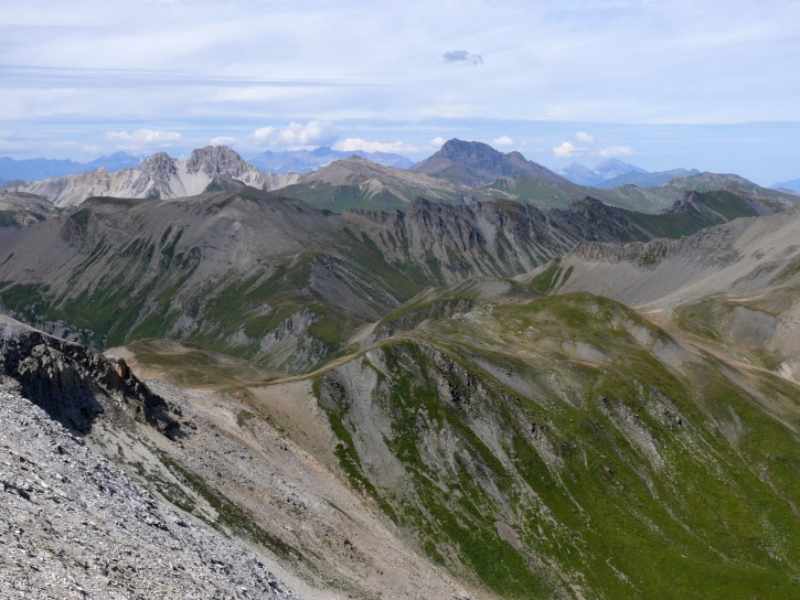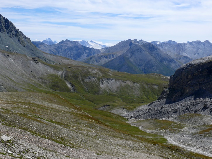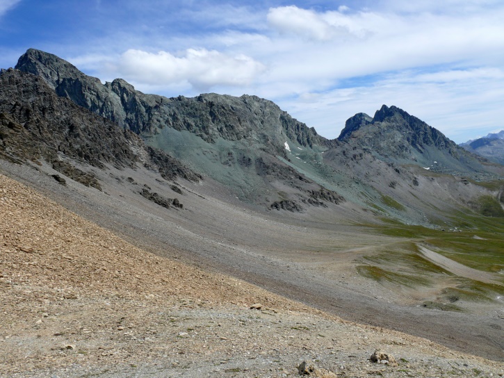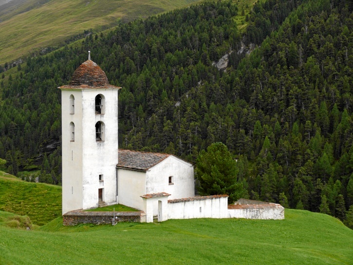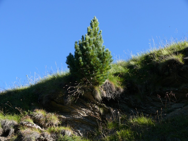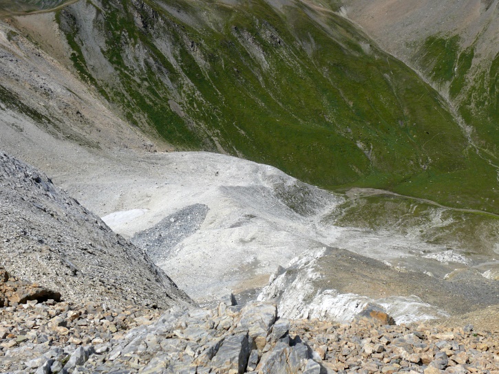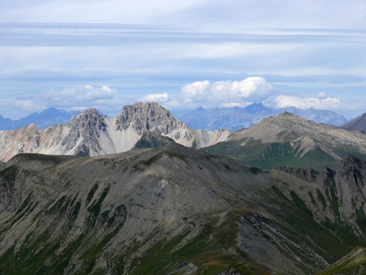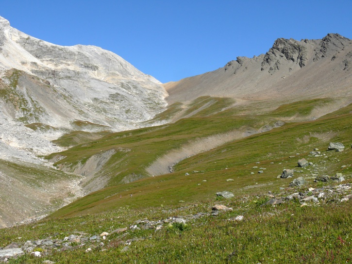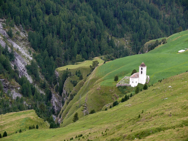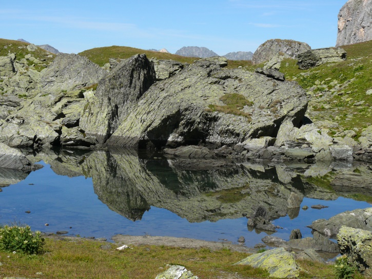 Der Abschluss am letzten Tag bildete die Tour von Cresta zum vielgepriesenen herzförmigen Bandsee (den eine Wandererin kurzentschlossen auch zum Abkühlen benutzte). Die Zeit reichte noch aus, um zur Tälifurrga (2822 m), zwischen Tälihorn (3164 m) und Wissberg (3002 m) gelegen, aufzusteigen, von wo aus man mit einem lohnenden Blick auf die Berggipfel Richtung Julierpass-Strasse und den Park Ela entschädigt wird.