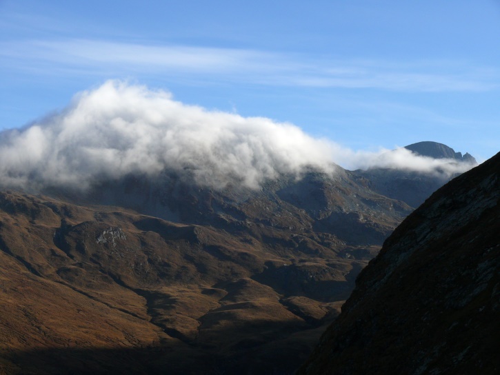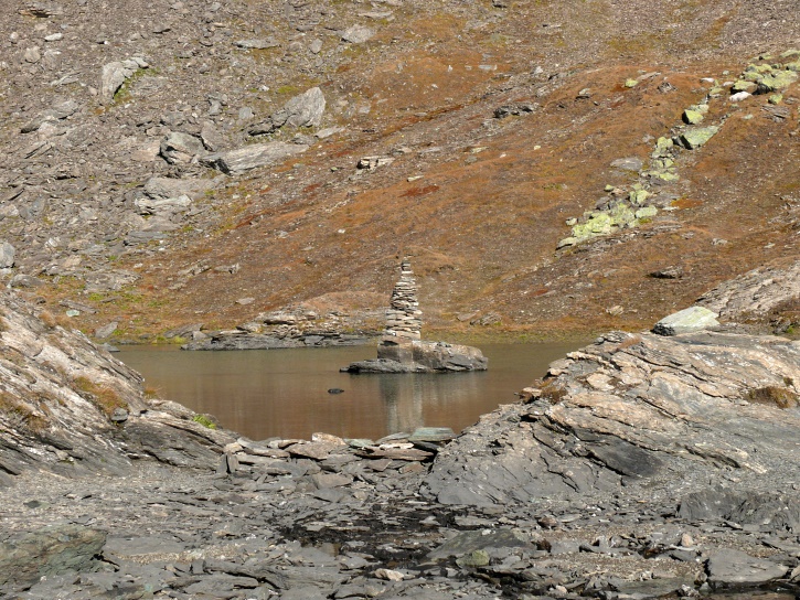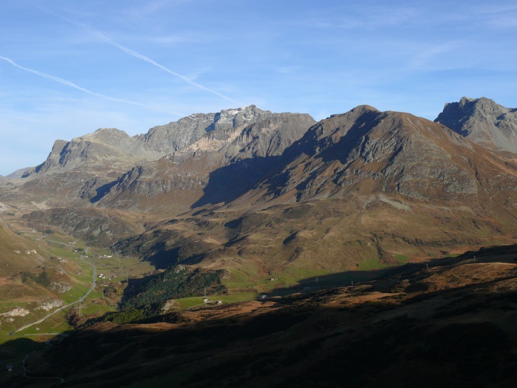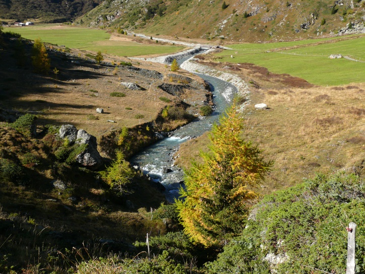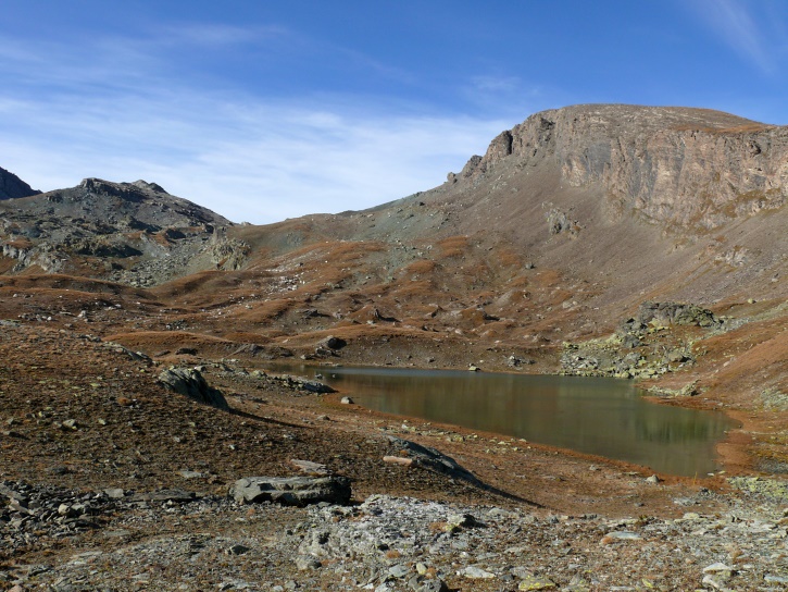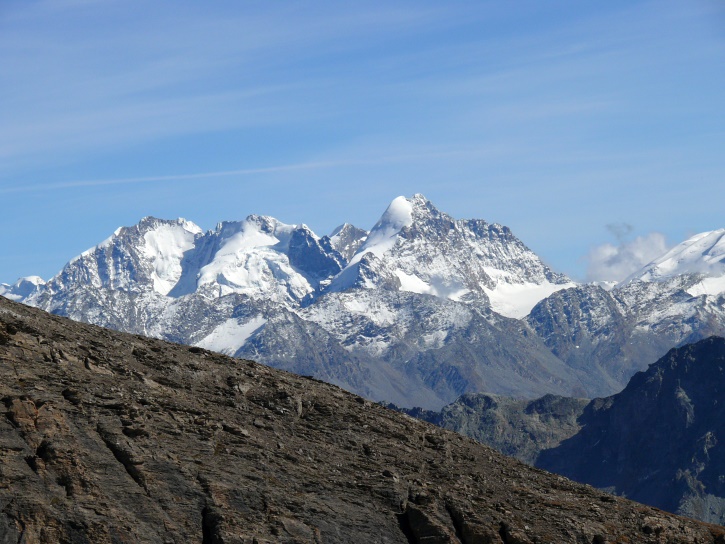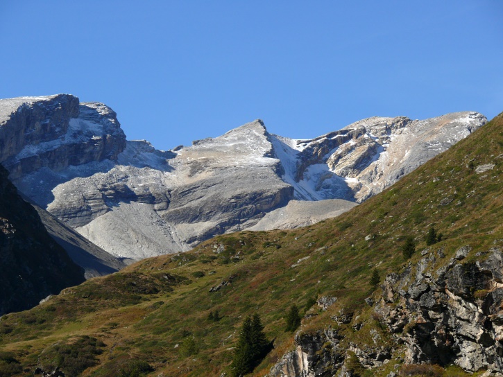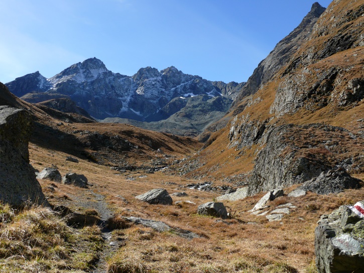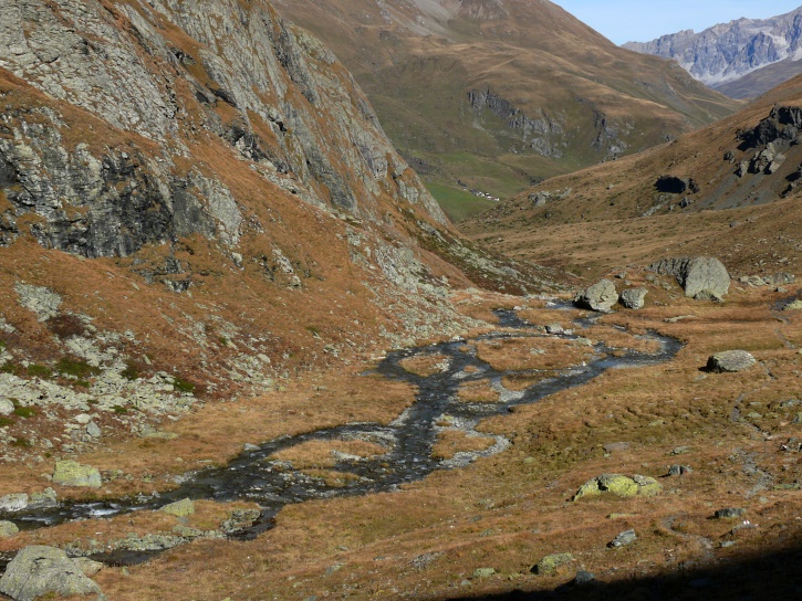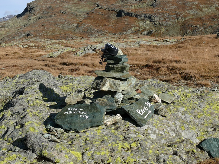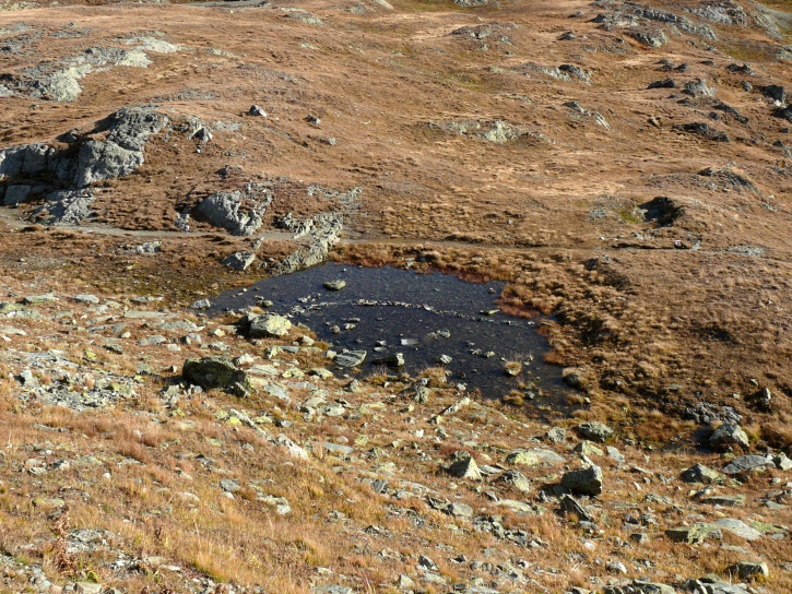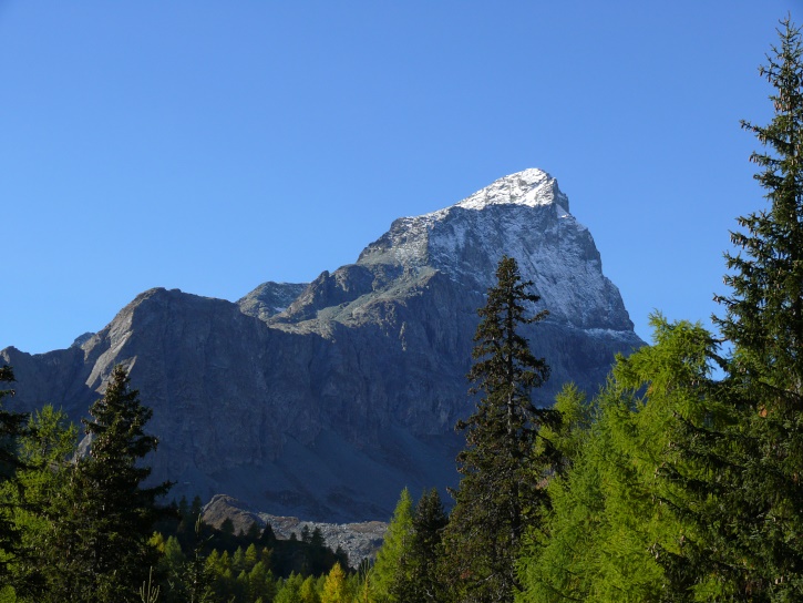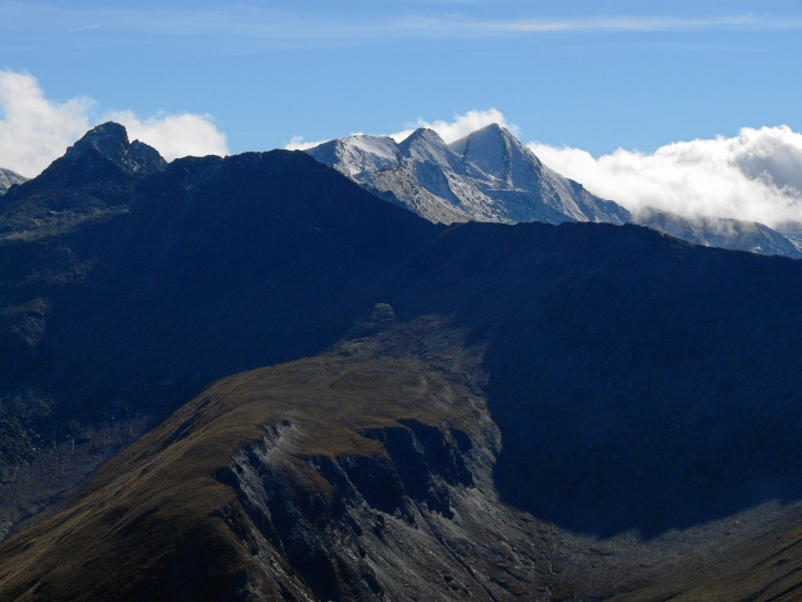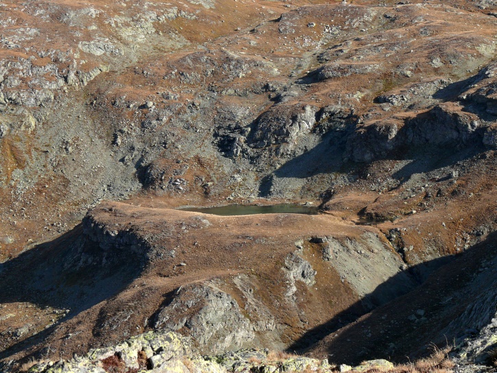 Am folgenden Tag ist der Himmel strahlend blau und verheißt einen angenehmeren Wandertag. Von Mulegns aus geht es durchs Fallertal hoch zur 1600 m höher gelegenen Fallerfurgga. Bald dominiert das kantige pyramidenförmige Profil des Piz Platta (3392 m) die Sicht, das Gehör wird mit ungewöhnlichen stöhnenden Geräuschen bombardiert, nämlich dem Röhren der brünftigen Hirsche. Bei der Fallerfurgga weitet sich der Blick schlagartig und man gerät angesichts des 360°-Gipfelblickes geradezu in Verzückung! Insbesondere die Eisriesen der Berninagruppe sind sehr beeindruckend! Ein weiteres Highlight sind die Flüeseen, eine Ansammlung von vier funkelnden Seen. Über Stallerberg gehrt es nun abwärts nach Bivio, wo mich der Postbus, dank Gästekarte gratis, zum Ausgangspunkt bringt.
