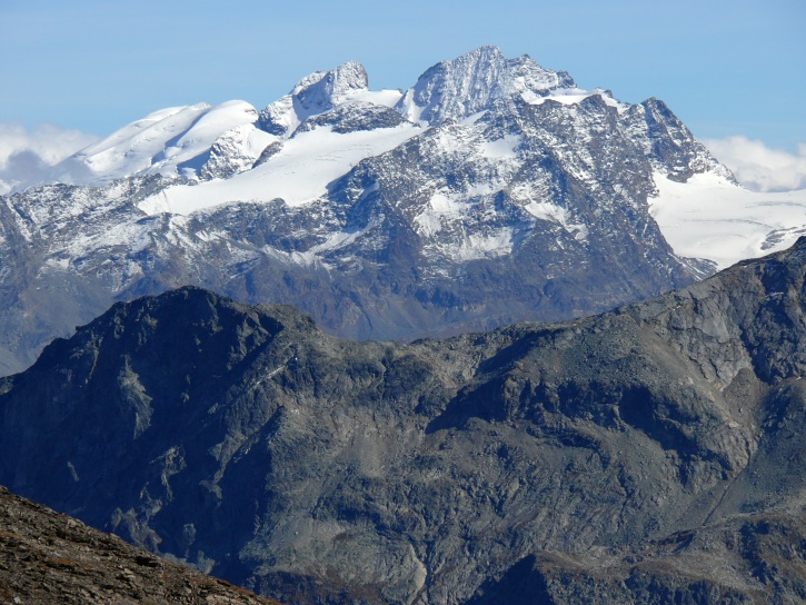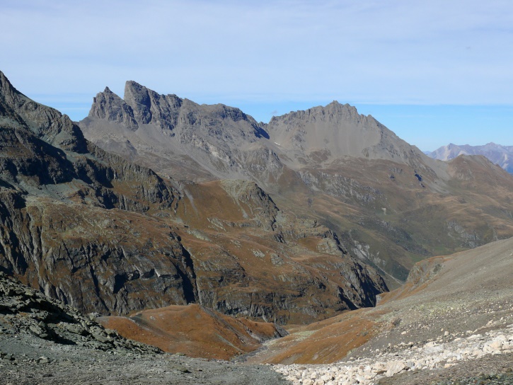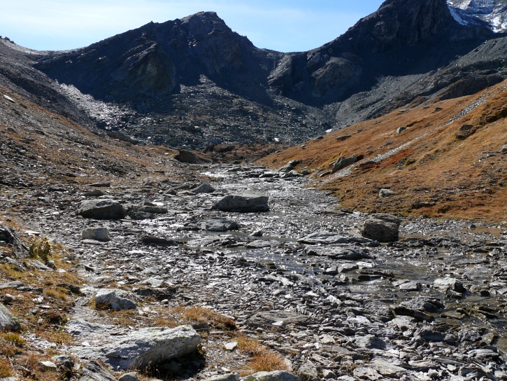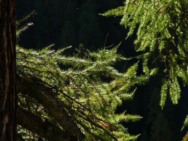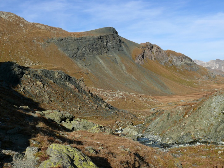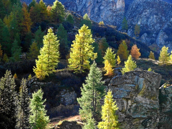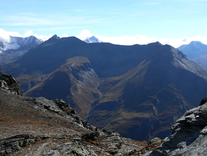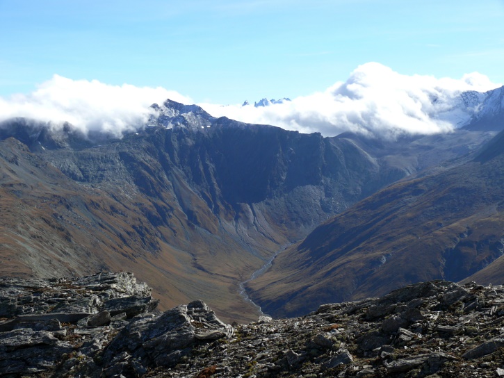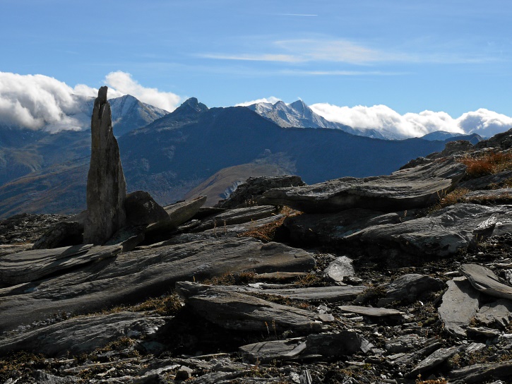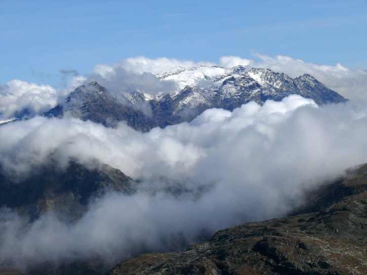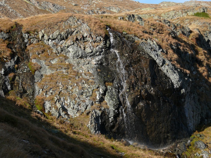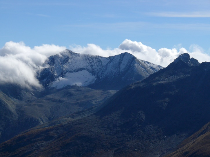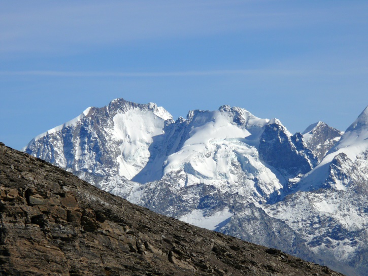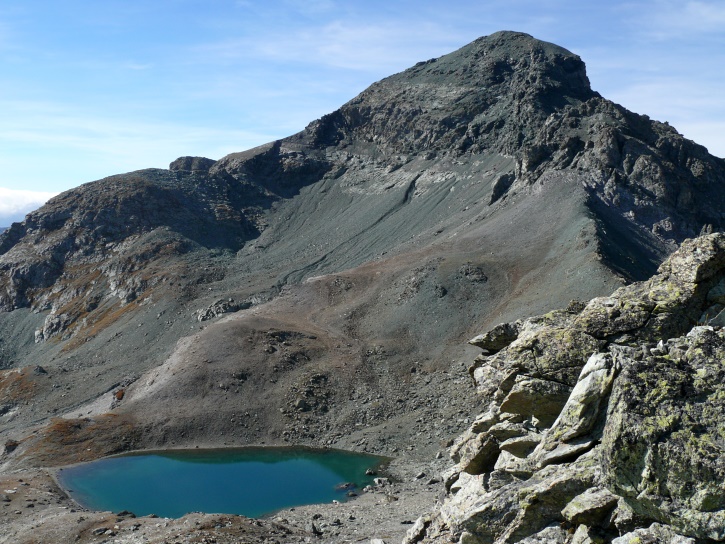 Am folgenden Tag ist der Himmel strahlend blau und verheißt einen angenehmeren Wandertag. Von Mulegns aus geht es durchs Fallertal hoch zur 1600 m höher gelegenen Fallerfurgga. Bald dominiert das kantige pyramidenförmige Profil des Piz Platta (3392 m) die Sicht, das Gehör wird mit ungewöhnlichen stöhnenden Geräuschen bombardiert, nämlich dem Röhren der brünftigen Hirsche. Bei der Fallerfurgga weitet sich der Blick schlagartig und man gerät angesichts des 360°-Gipfelblickes geradezu in Verzückung! Insbesondere die Eisriesen der Berninagruppe sind sehr beeindruckend! Ein weiteres Highlight sind die Flüeseen, eine Ansammlung von vier funkelnden Seen. Über Stallerberg gehrt es nun abwärts nach Bivio, wo mich der Postbus, dank Gästekarte gratis, zum Ausgangspunkt bringt.