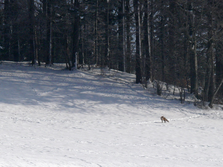 Kurz vor Silzberg streicht ein einsamer Fuchs durchs Gelände
