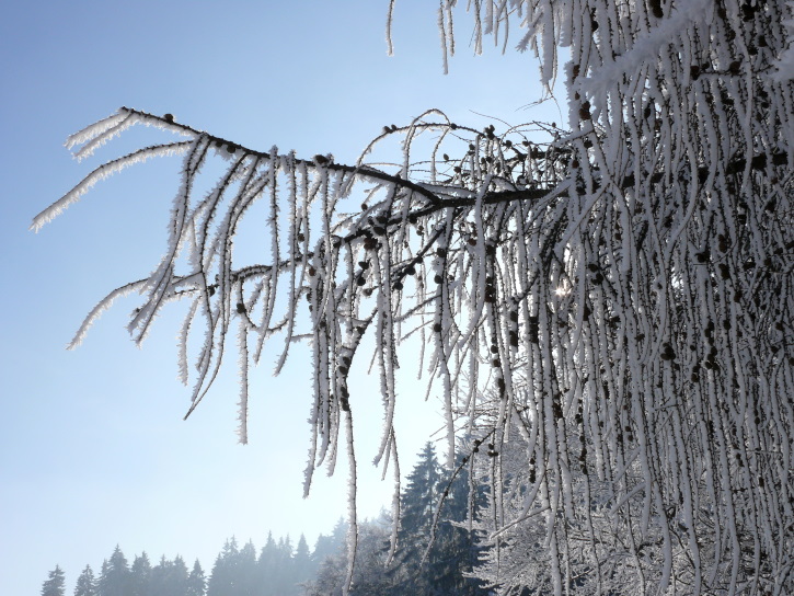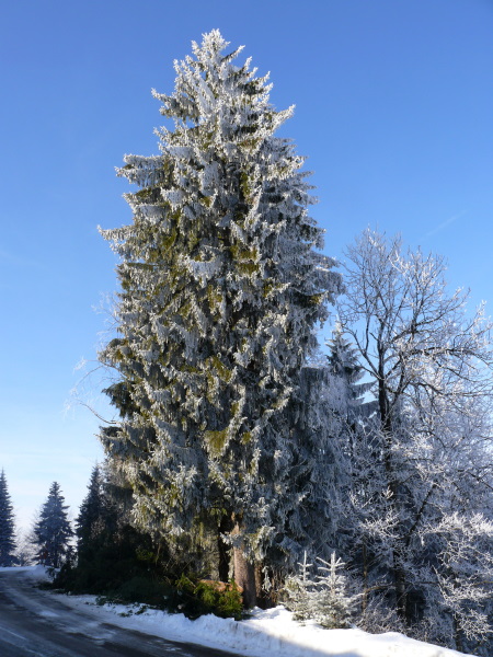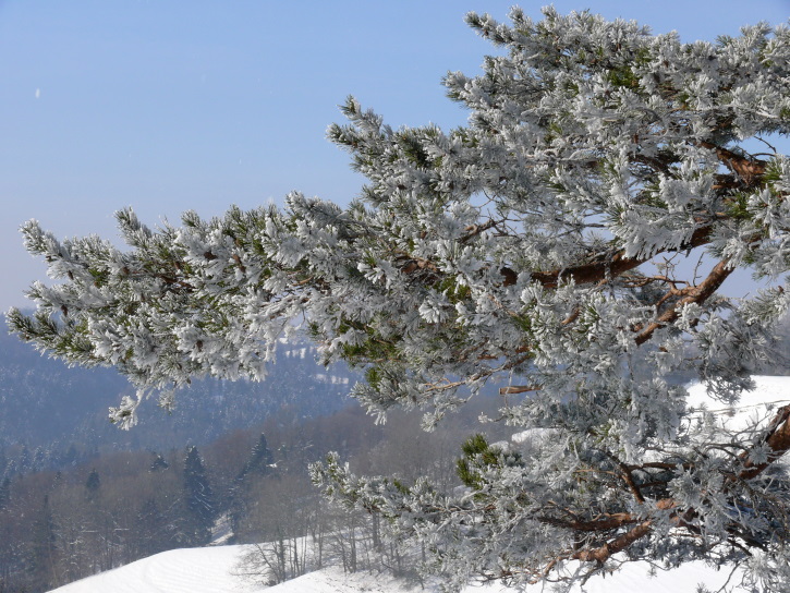 Auf dem Habärg: mit Rauhreif bedeckte Kiefer