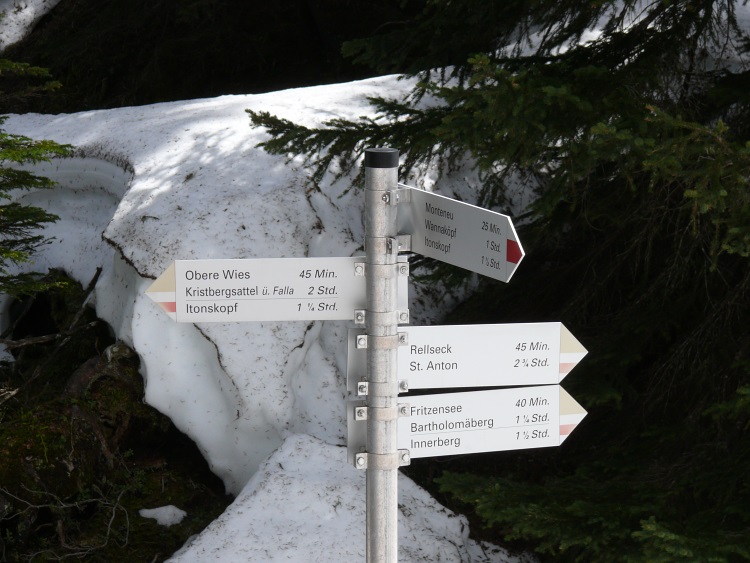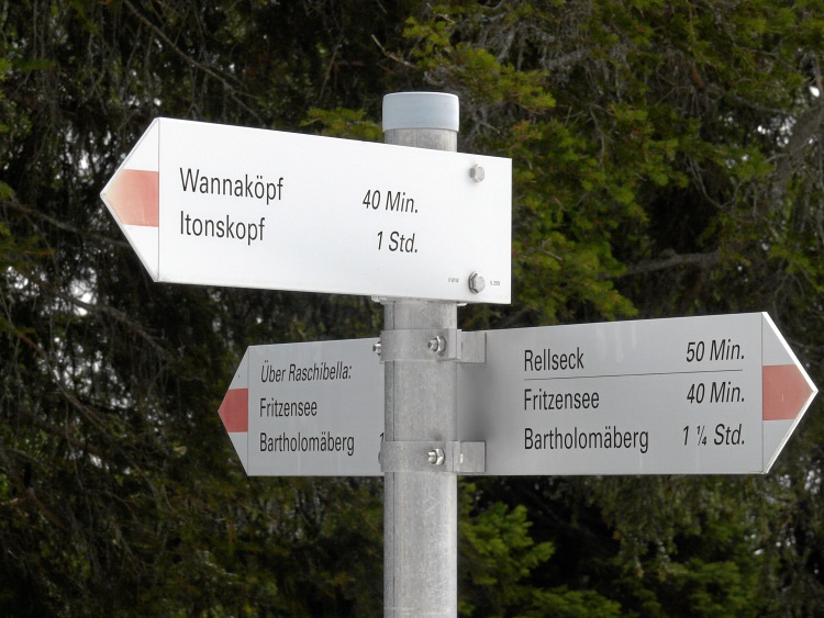 Route | Bartholomäberg (1080 m) → Rellseck (1480 m) → Monteneu (1883 m) → Wannaköpfle (2032 m) → Monteneu → Friztensee → Bartholomäberg |