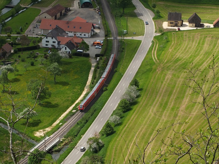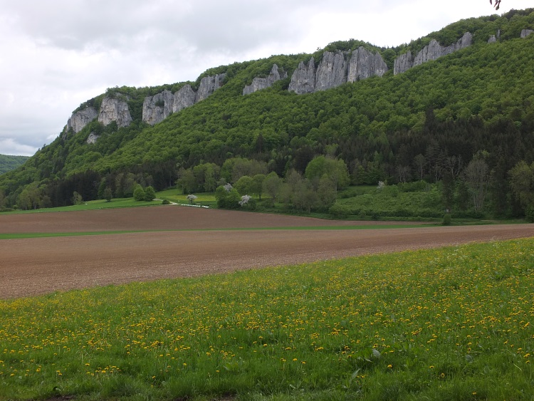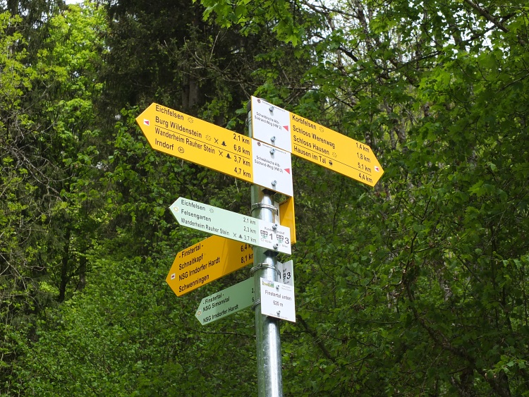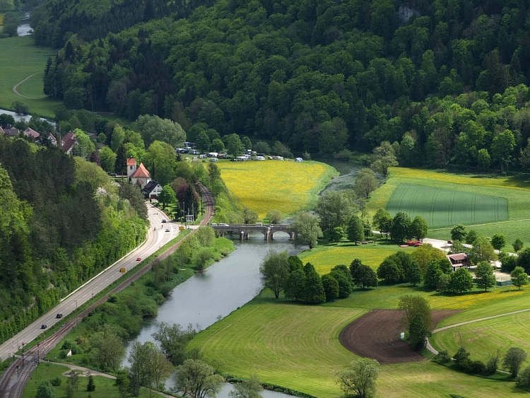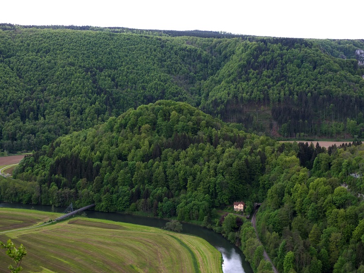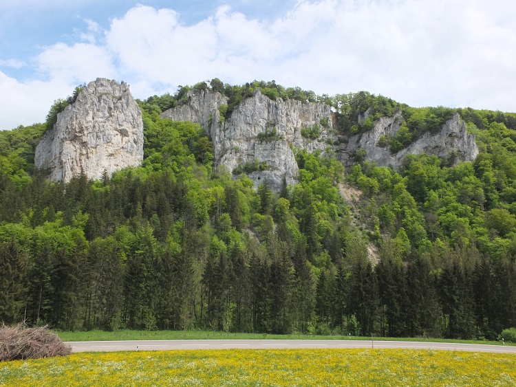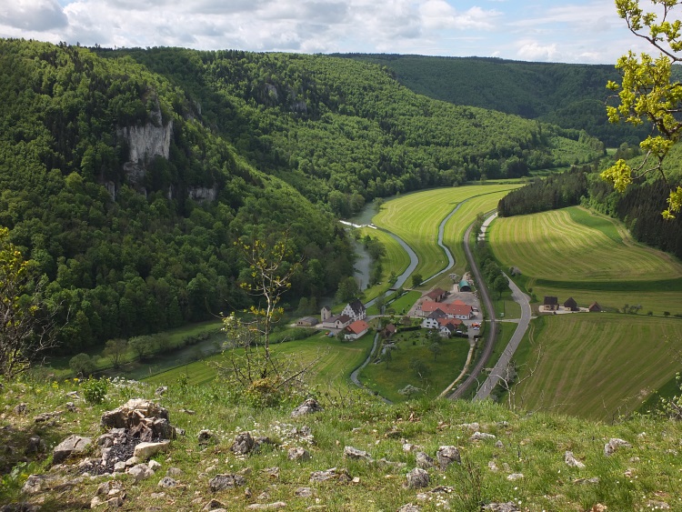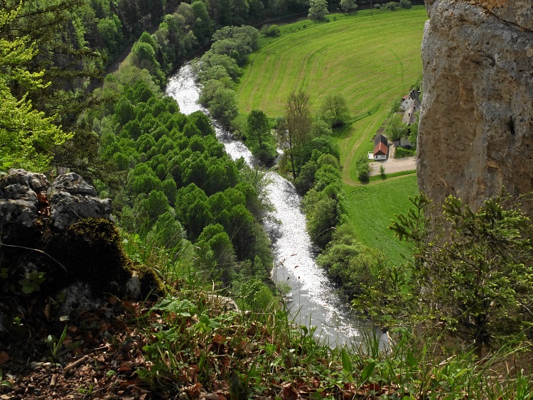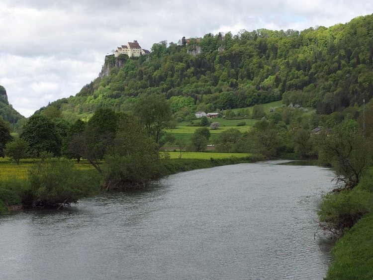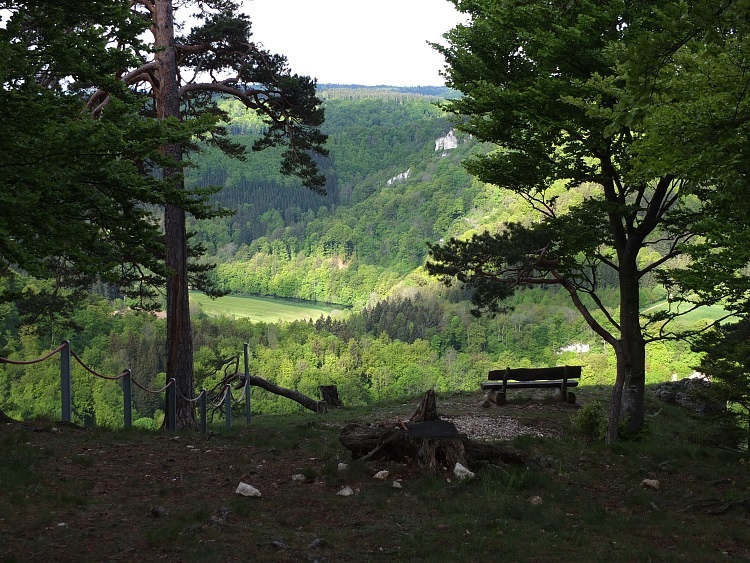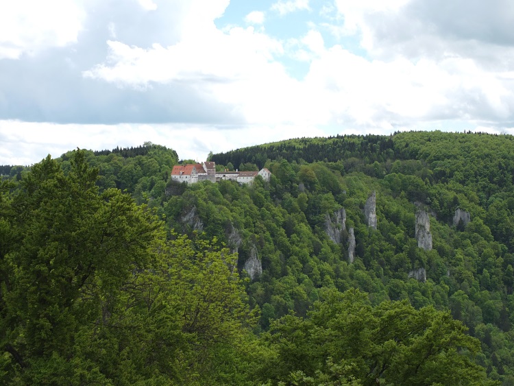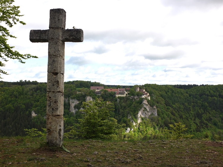Route | Burg Wildenstein (1080 m) → Bandfelsen (818 m) → Hoher Felsen → Hausen im Tal → Echofelsen beim Schloss Werenwag → Korbfelsen → Eichfelsen → Rauher Stein → Kloster Beuron → Altstadtfelsen → Burg Wildenstein |