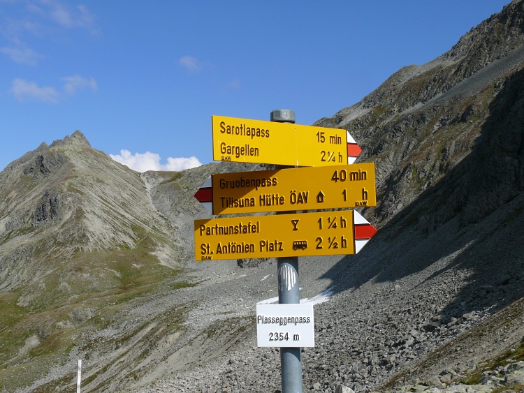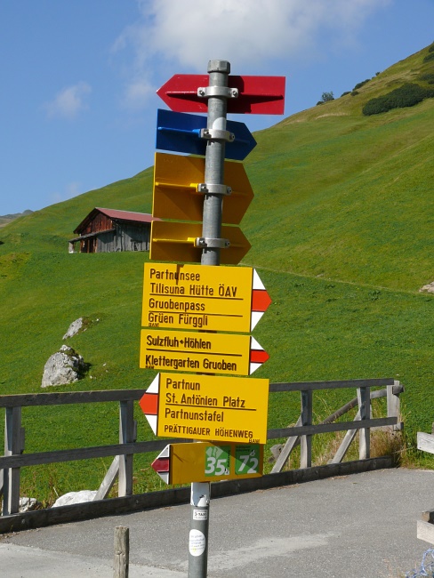 Route | Tilisunahütte, 2211 m → Zollwachhütte → Grubenpass (2241 m) → Partnunsee (1870 m) → Partnun (1770 m) → Engi (2017 m) → Plasseggen → Plasseggenpass (2354 m) → Anstieg zur Scheienflue (ca. 2500 m) → Grubenpass →Tilisunahütte, 2211 m |