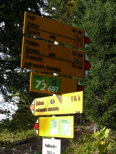 Route | Grüsch (620 m) → Seewies (950 m) → Fadära → Fadärastein (1163 m) → Fadära → am Crupspitz vorbei → Pardisla → Grüsch |