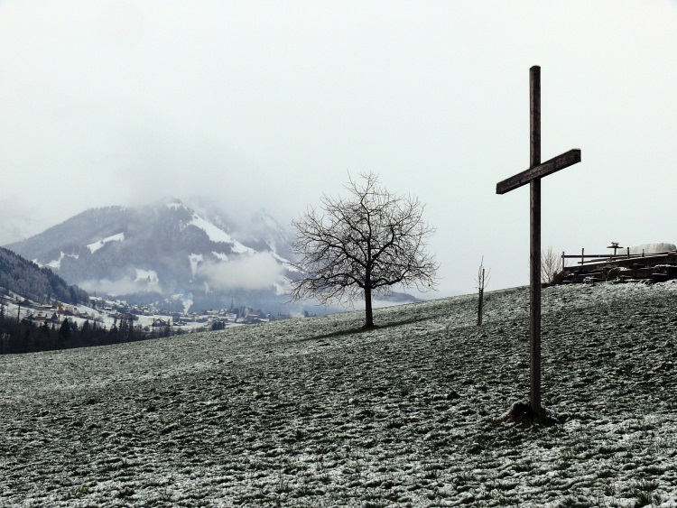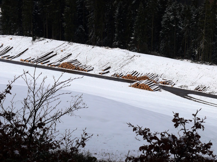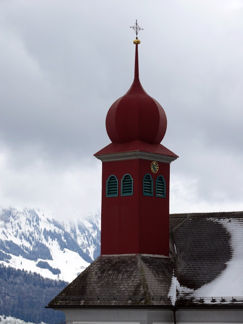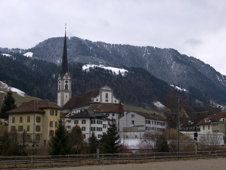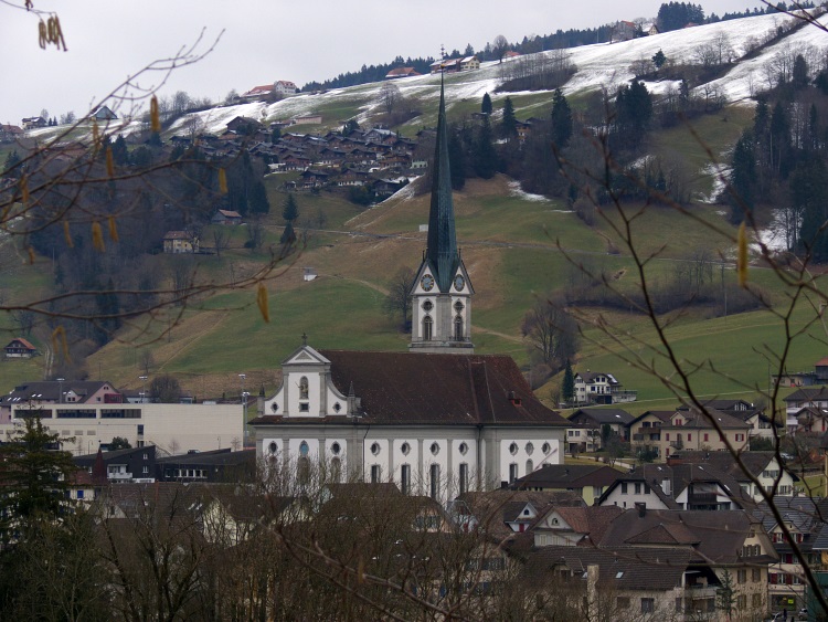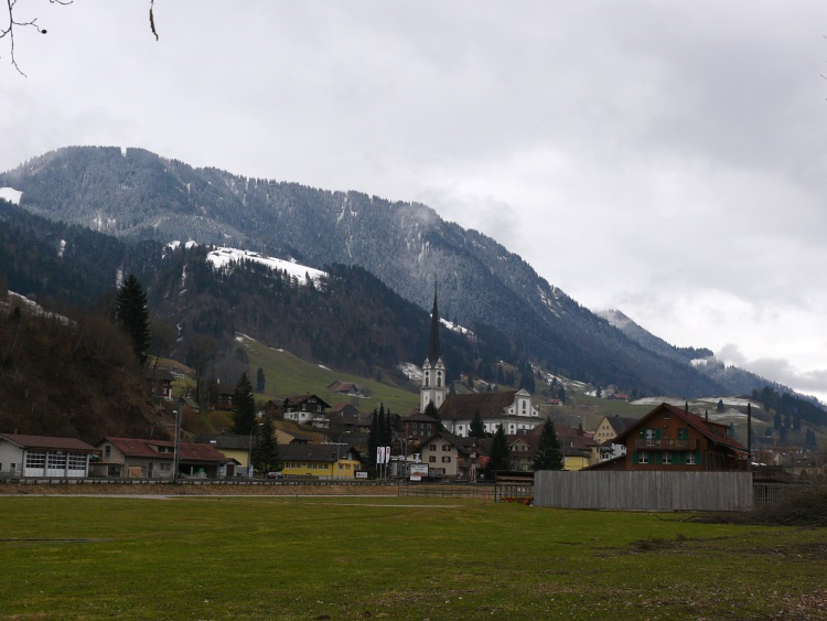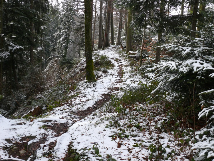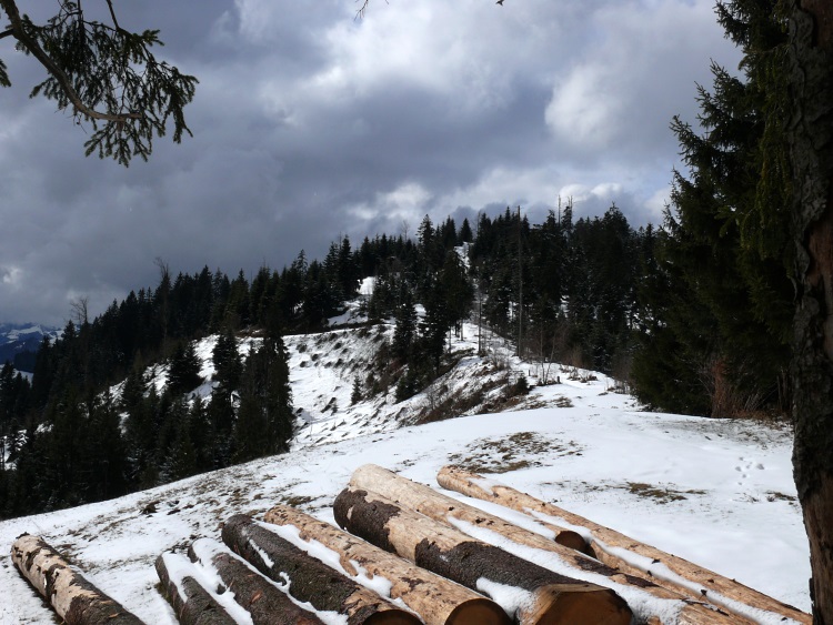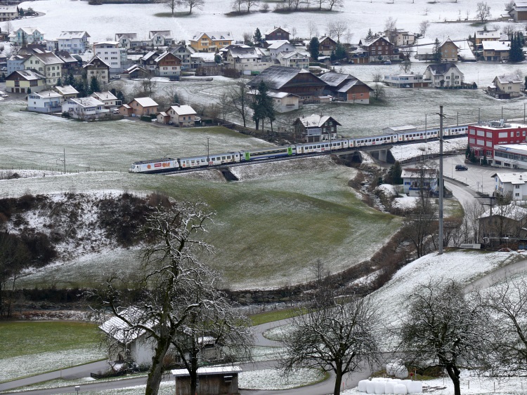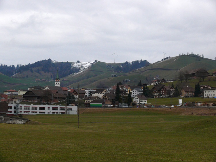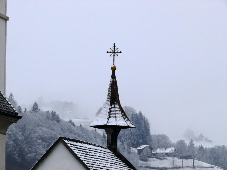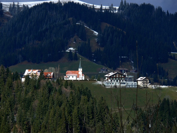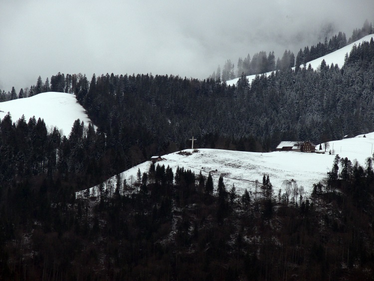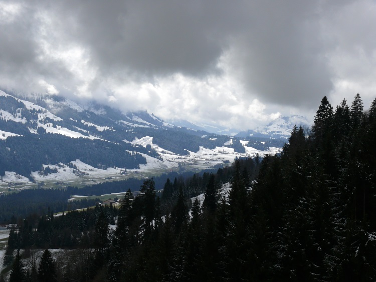 Blick vom Grat auf das frisch verschneite Hasle, dahinter der Farnere