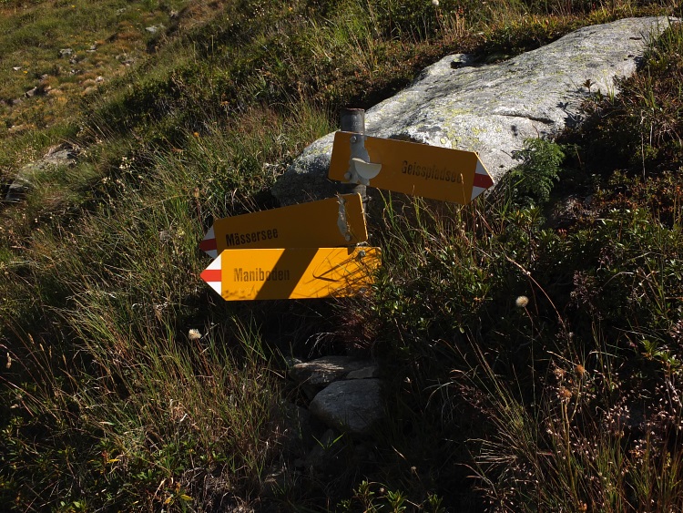 Route | Campingplatz bei Fäld (1480 m) → Mineraliengrube Lengenbach → Schäri → Manibode → Geißpfadsee → Passo della Rossa → Züesee → Punkt 2498 zw. Geißpfadsee und Wanderweg → Mässersee (2137 m) → Mässerchäller (1879 m) → Mässerbach → Fäld |
