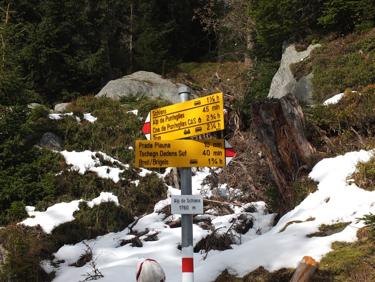 Route | Schlans (1135 m, Parkplatz) → Alp da Schlans → Alp da Schlans Sut (1723 m) → Prada Plauna → Tschegn Dadens Sut (1720 m) → Pradas → Schlans |