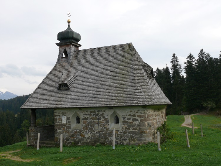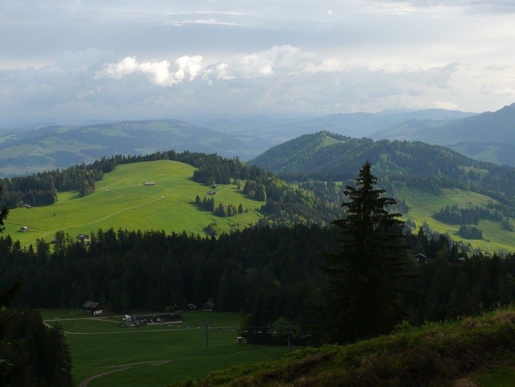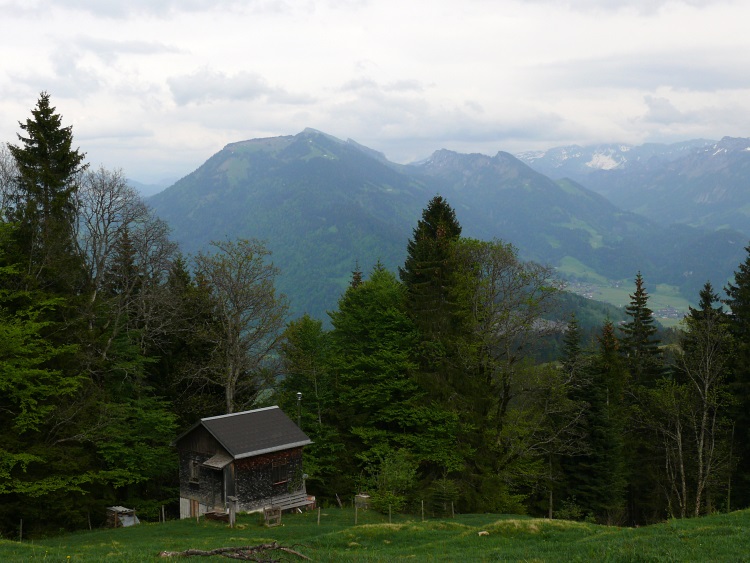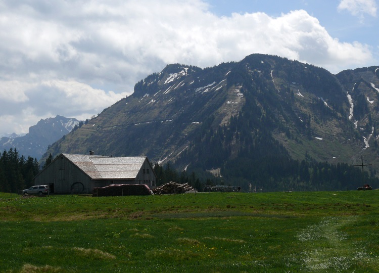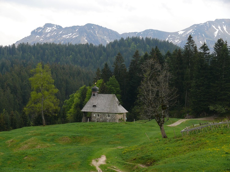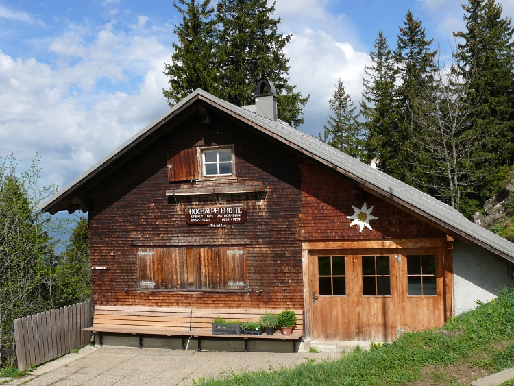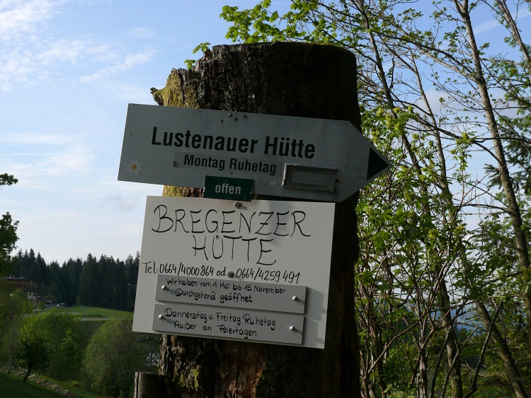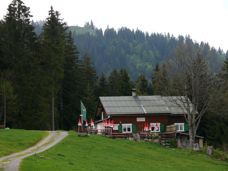 Route | Bödele, Parkplatz (1100 m) → Oberlose → Am Lank → Hochälpele (1463 m) → Sattel Punkt 1248 → Gräsakopf (1355 m) → Weißenfluhalpe (1370 m) → Bregenzerhütte → Aussichtspunkt bei der Rotenbachalpe → Lustenauer Hütte → Benediktkapelle → Bödele |