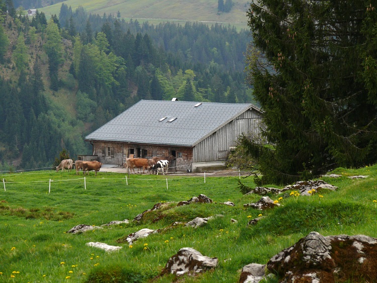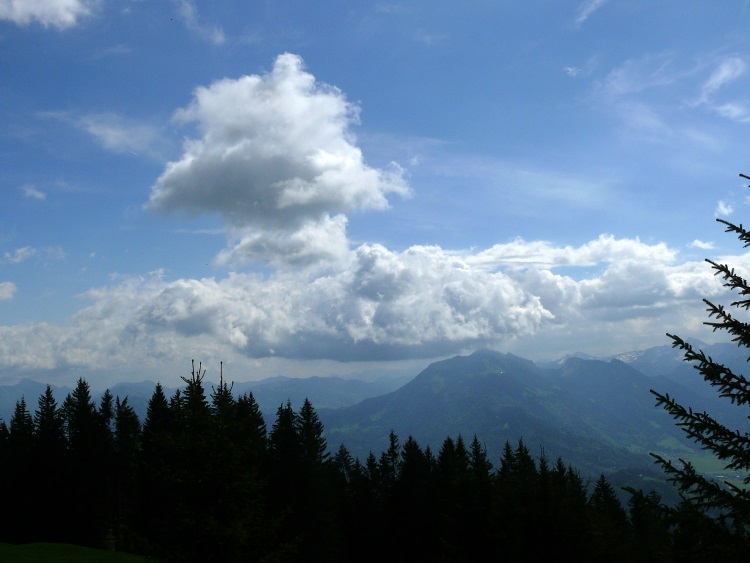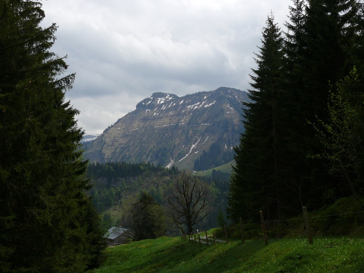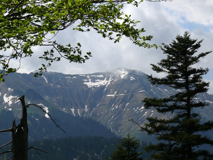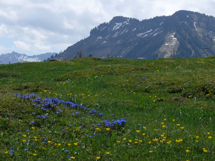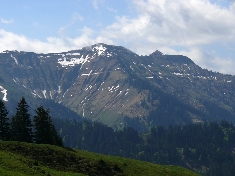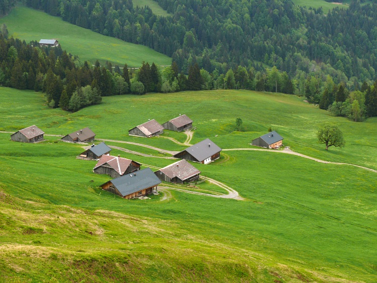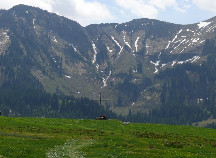 Route | Bödele, Parkplatz (1100 m) → Oberlose → Am Lank → Hochälpele (1463 m) → Sattel Punkt 1248 → Gräsakopf (1355 m) → Weißenfluhalpe (1370 m) → Bregenzerhütte → Aussichtspunkt bei der Rotenbachalpe → Lustenauer Hütte → Benediktkapelle → Bödele |