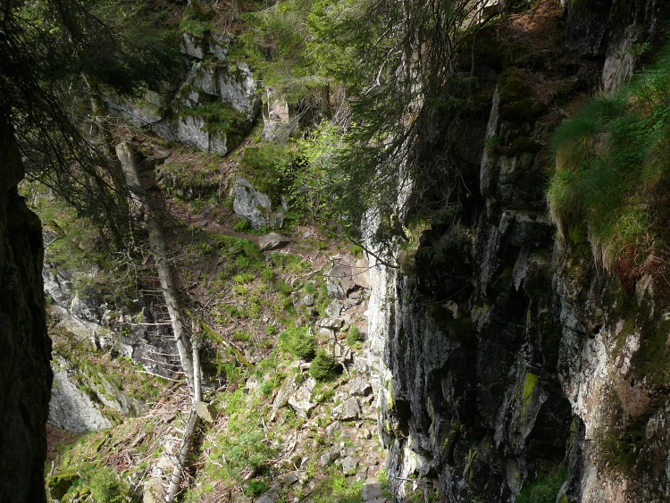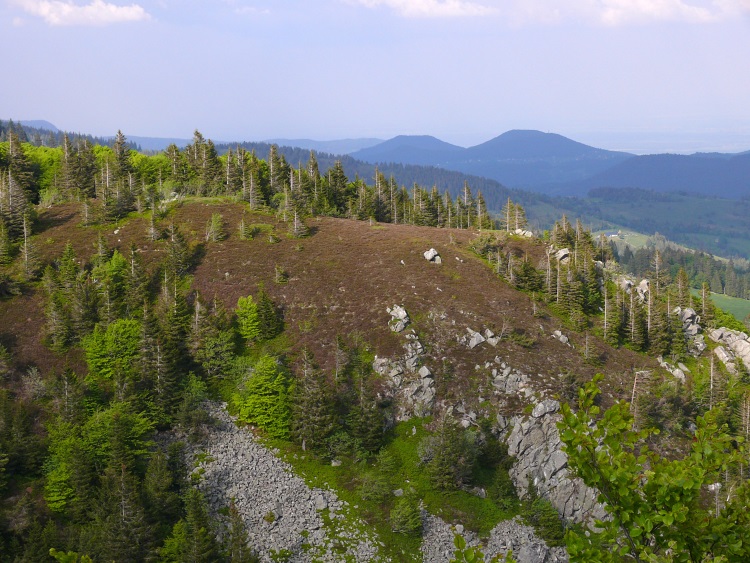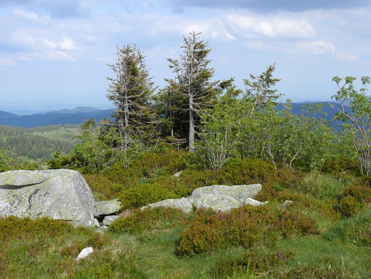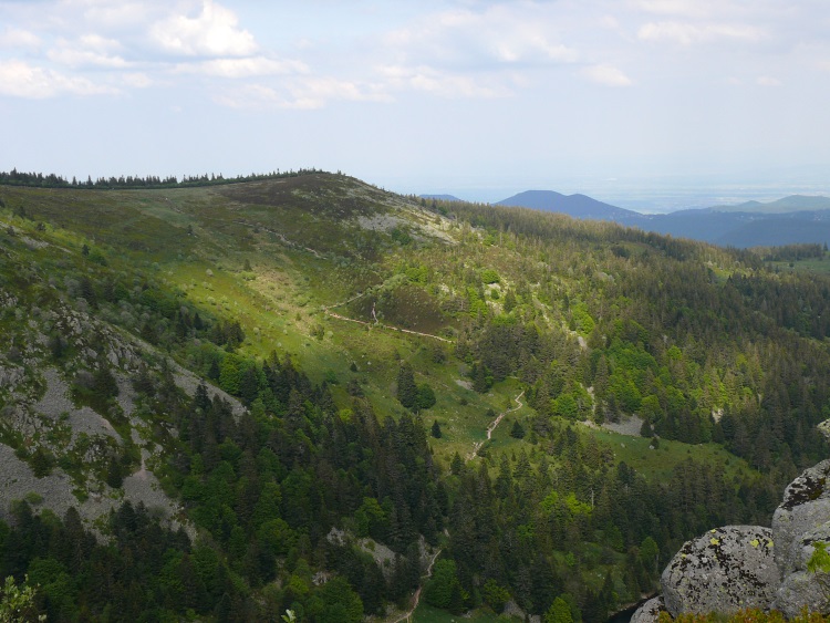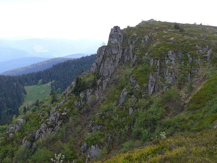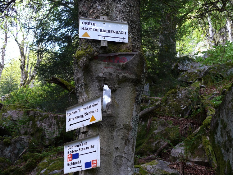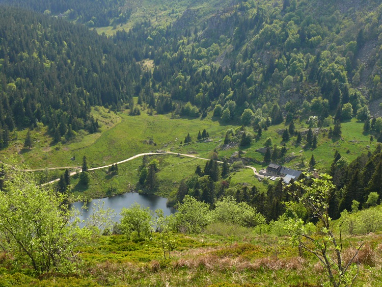 Route | Col de la Schlucht (1135 m) → Spitzenfels → Hirschsteine → Refuge de Schupferen → Seestaettle → Lac Vert (1053 m)→ Gaertlesrain → Lac de Trunes → le Forlet (1091 m) → Gazon du Faing (1302 m) → Taubenklangfelsen (1299 m) → Gazon du Faîte (1303 m) → le Tanet (1292 m) → le Wurzelstein (1288 m) → Col de la Schlucht |