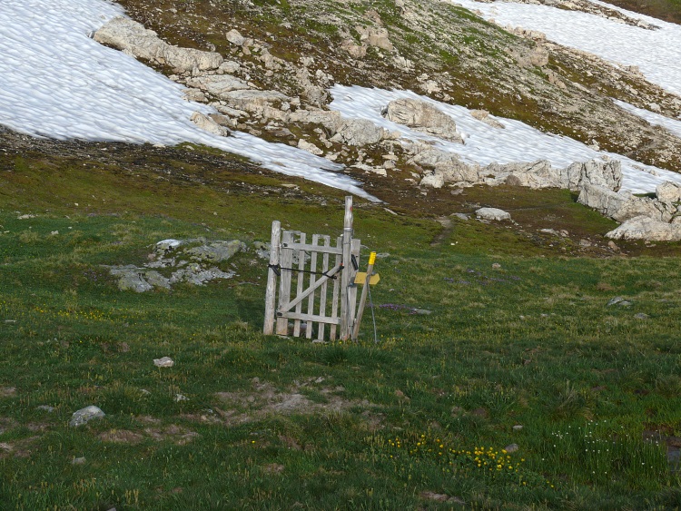 Das Türchen, das später einen Durchschlupf für Wanderer und Älpler bieten soll, steht noch recht nutzlos in der Landschaft herum.