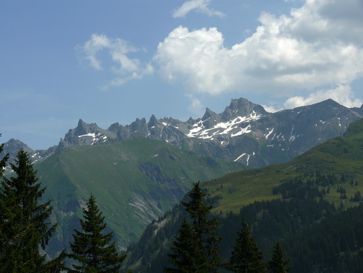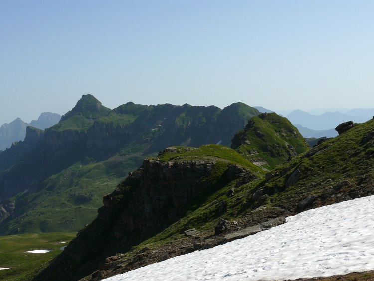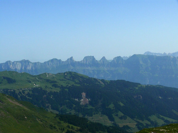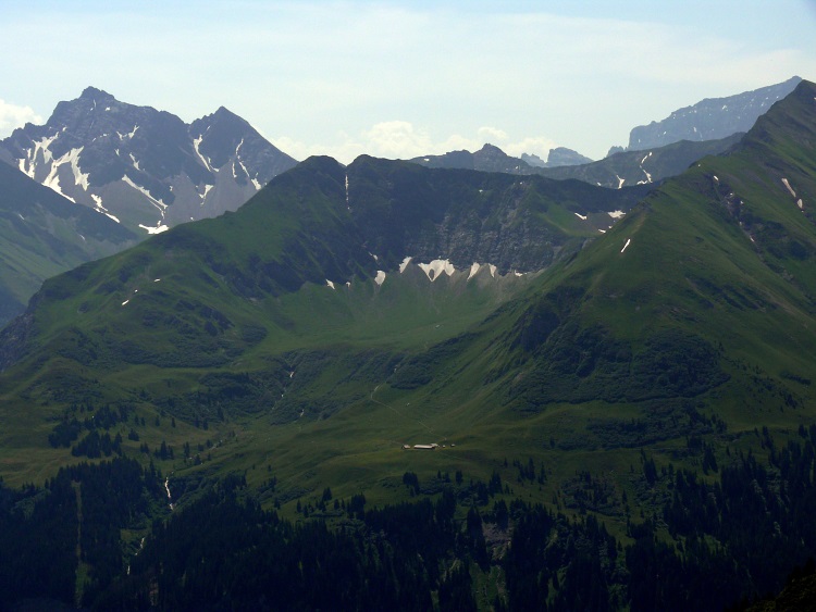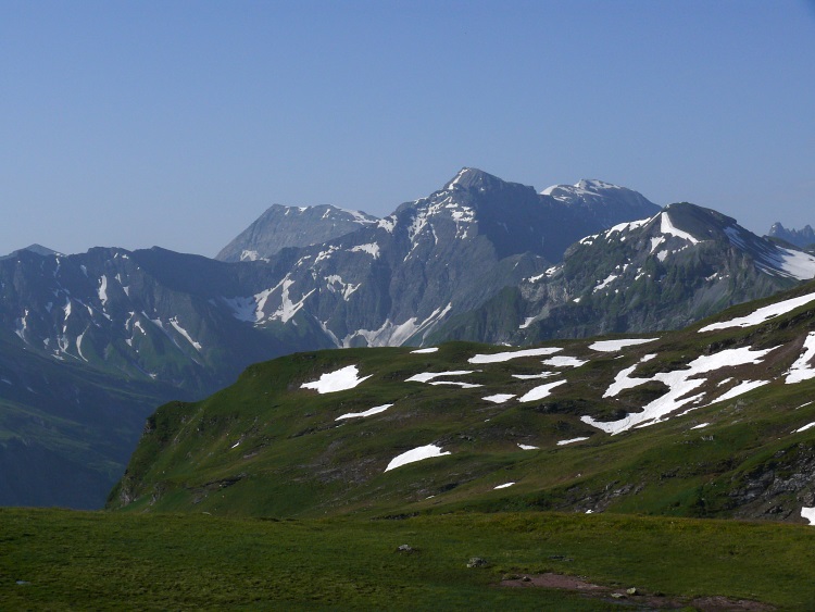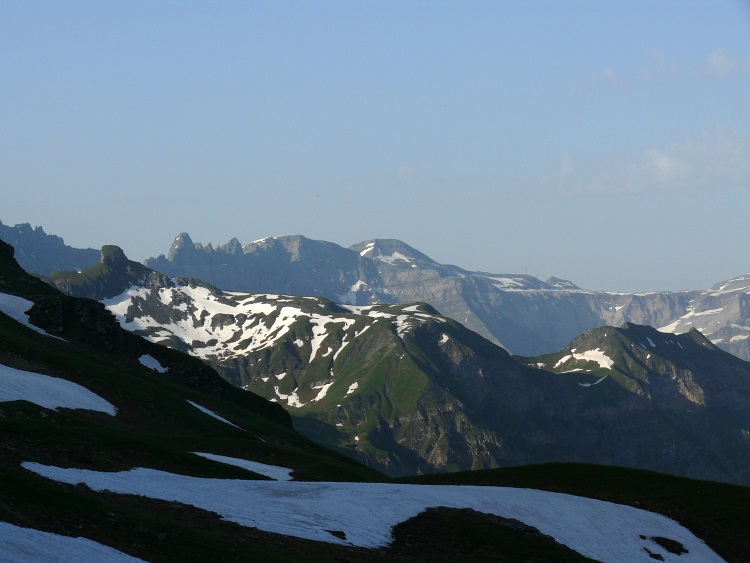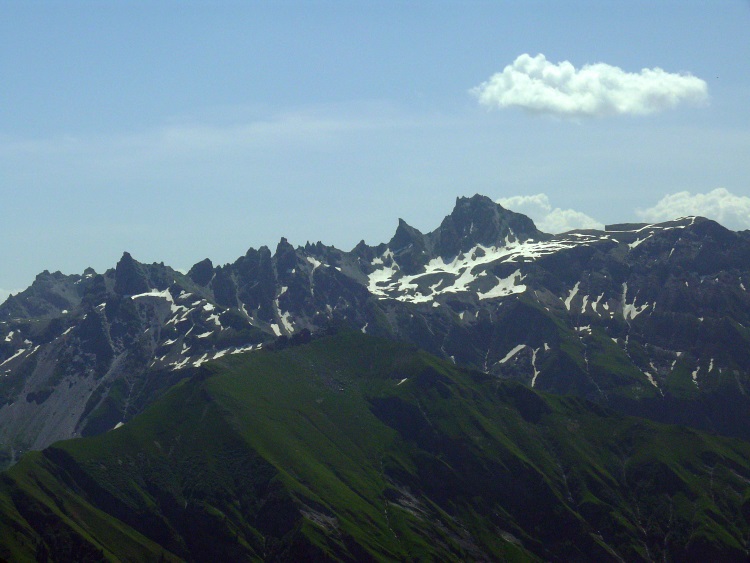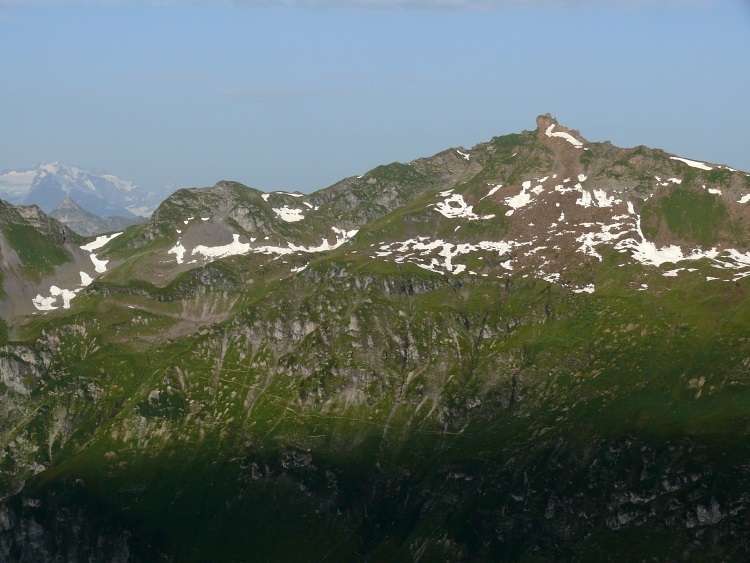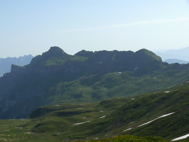 Vorab (im Hintergrund), davor der Grat zwischen Fanenstock (rechts) und Grüenenspitz (die spitzige Spitze etwas links)