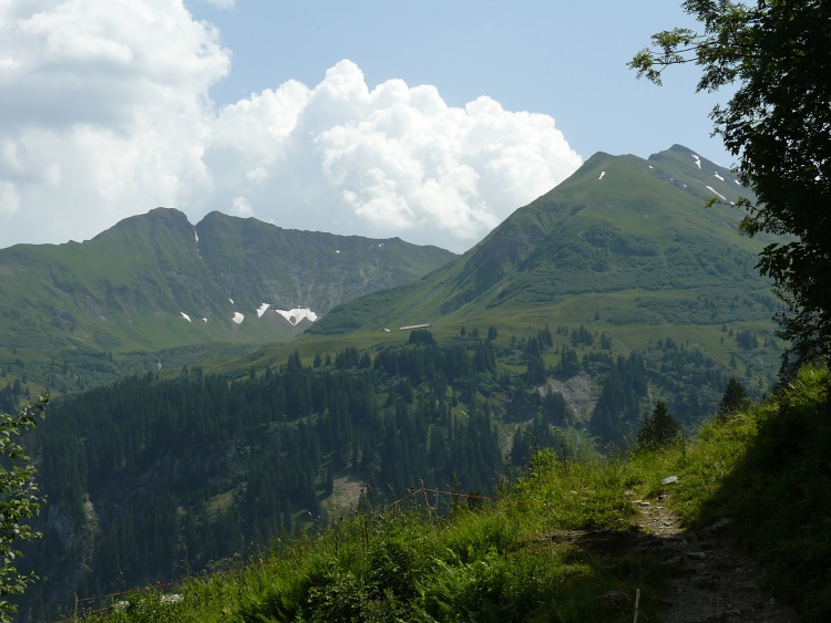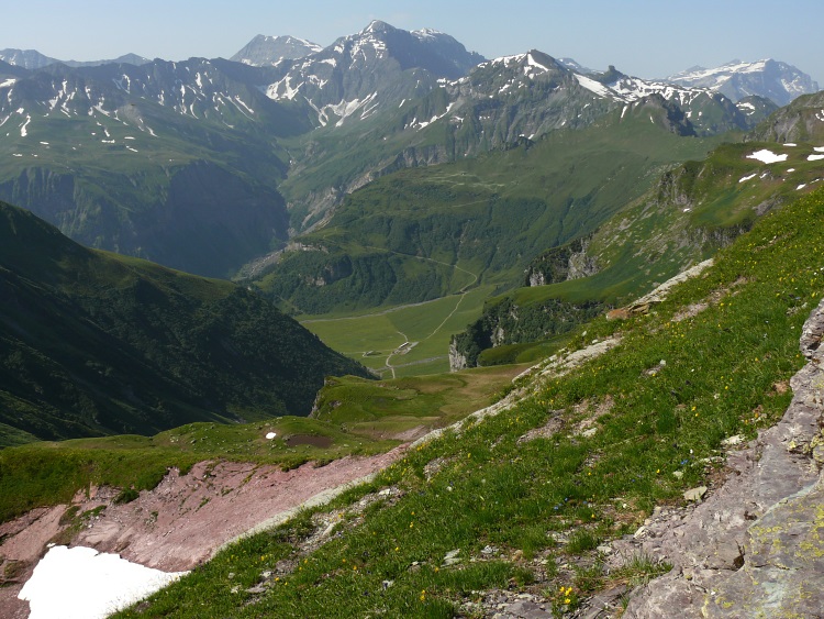 Blick Richtung Pizol. Unten im Tal liegt Weißtannen