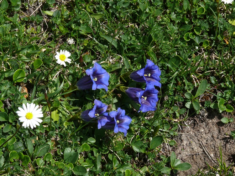 Augenfällig ist natürlich immer der Enzian, hier der tiefblaue kalkliebende Clusius-Enzian.