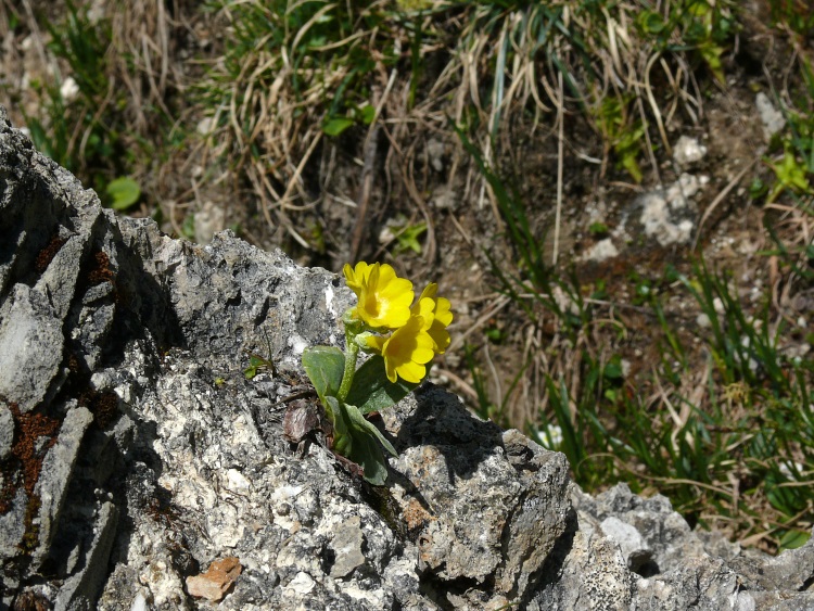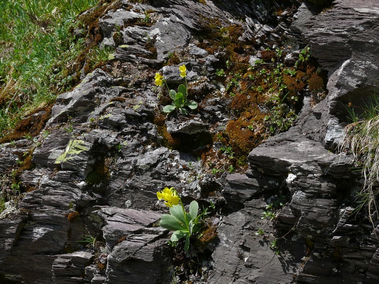 Trockene Felsnischen werden von der Alpen-Aurikel besetzt.