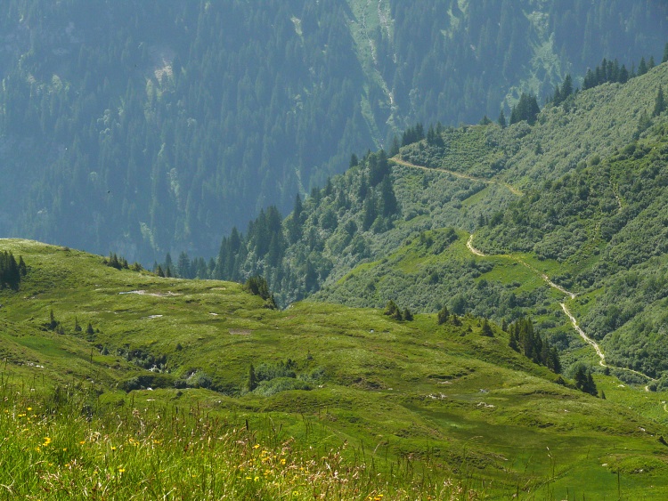 Rückblick auf die Alpe Lauisäss und einen Teil des Abstiegsweges