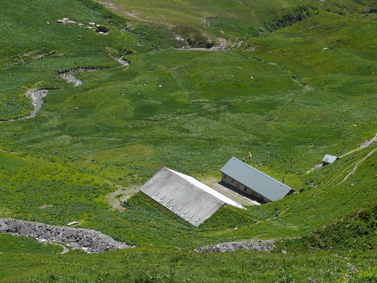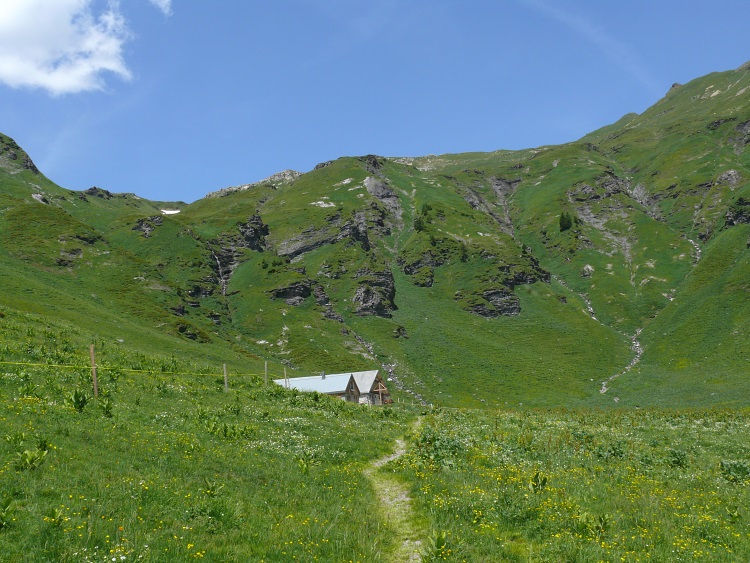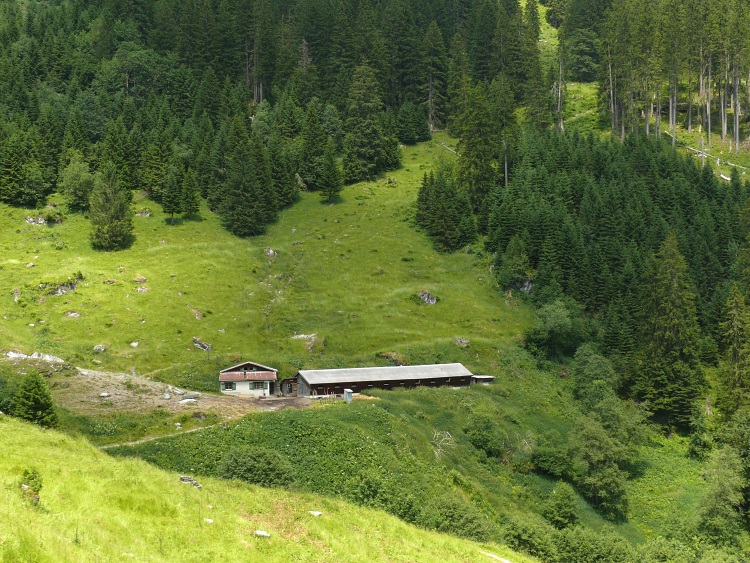 Nach dem steilen Abstieg ist schon fast die Alpe Lauisäss erreicht.
