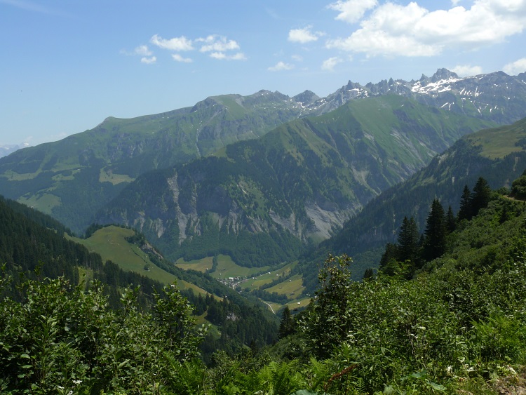 Blick hinüber übers Weisstannental zur Alpe Valtnov
