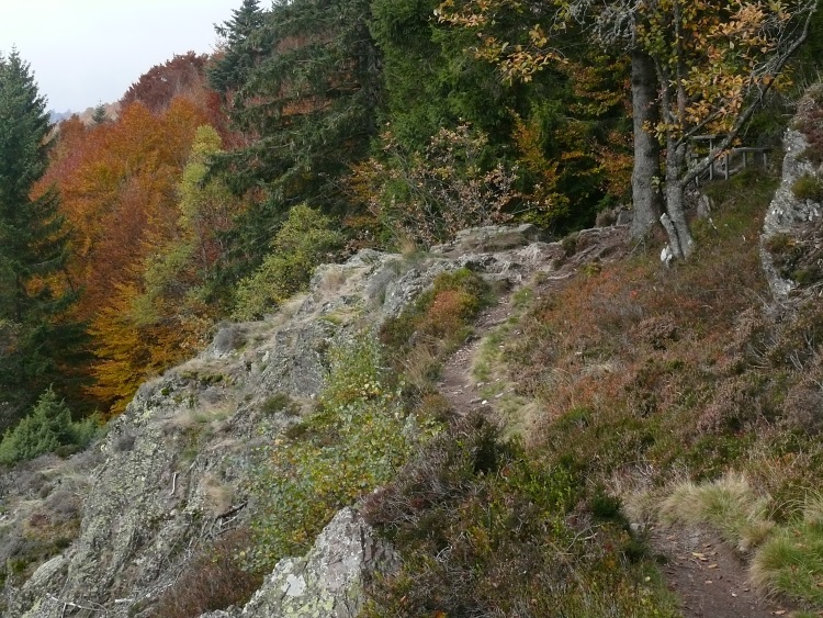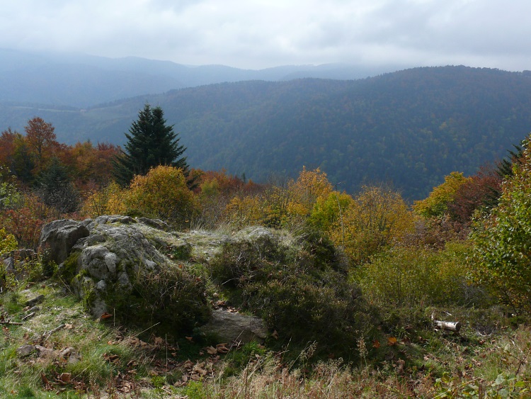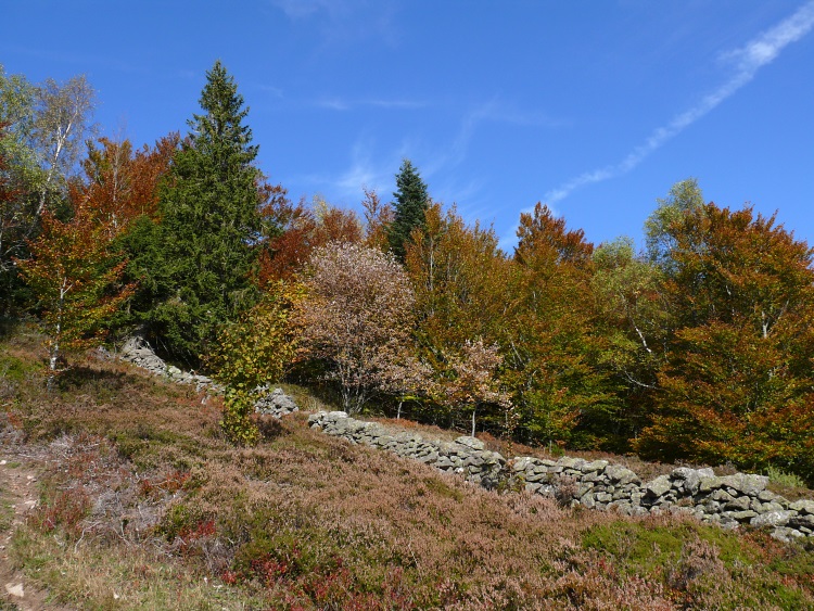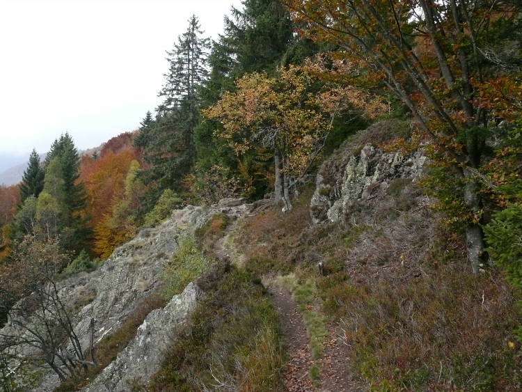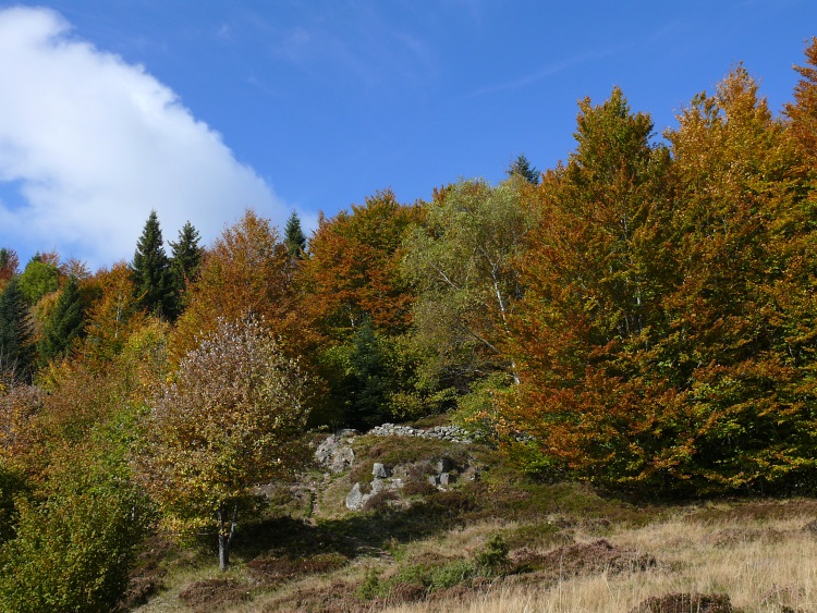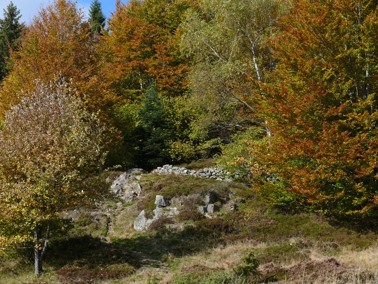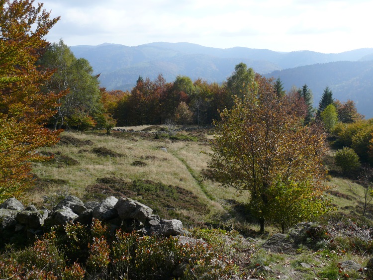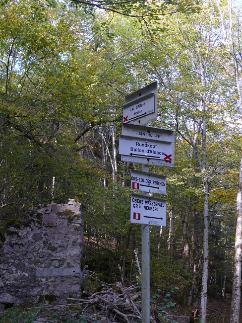 Route | Hütte "Haute Bers" (1110 m) → Tête des Charbonniers → Tête du Moinechamp → Col de Charbonniers → (GR 7) → Col de Morteville → Col de Ronde Tête → Ronde Tête (Rundkopf, 1117 m) → Tête du Moinechamp → Chalet Wasserfallhütte → Lac d´Alfeld → Lac de Sewen → Sewen → Oberbruck → Rimbach près Maseveaux [gelber GPS-Verlauf] |