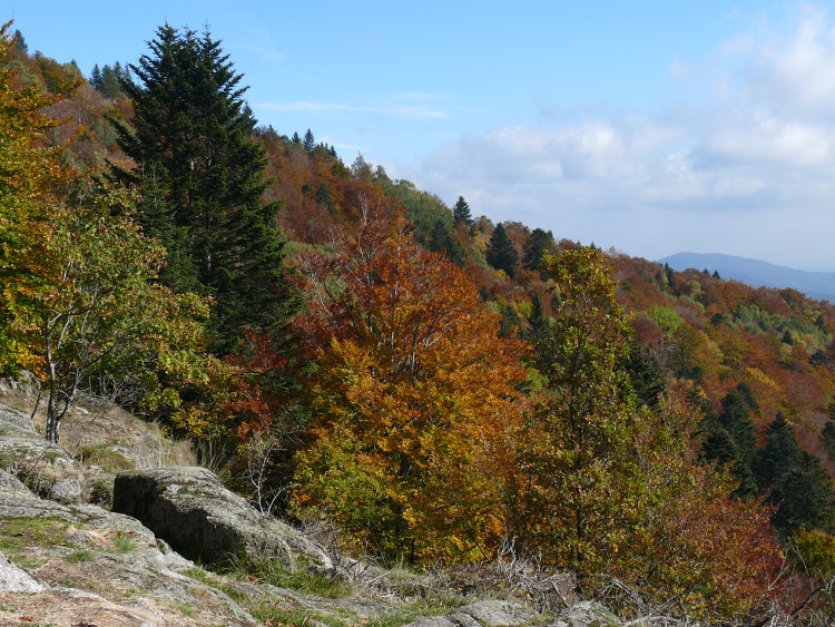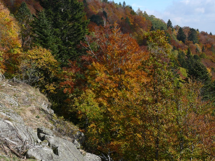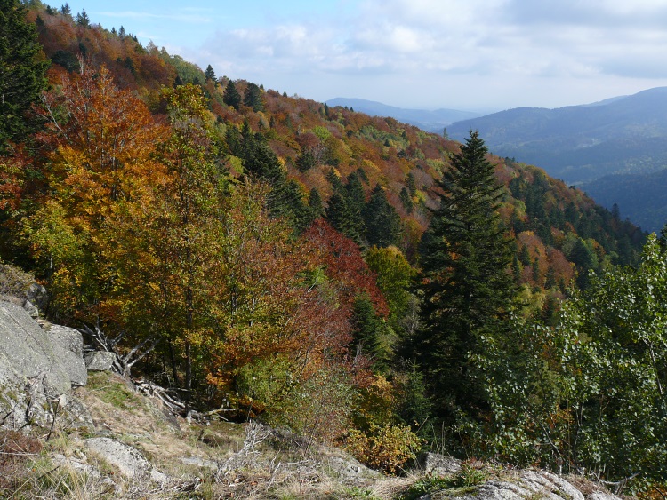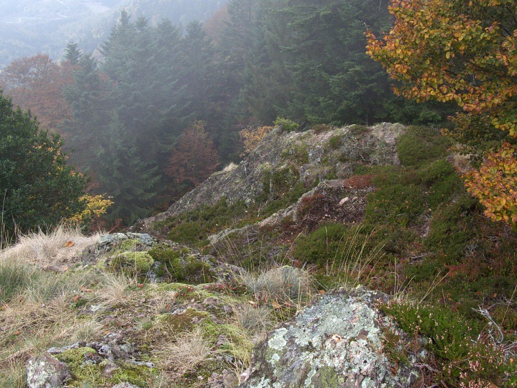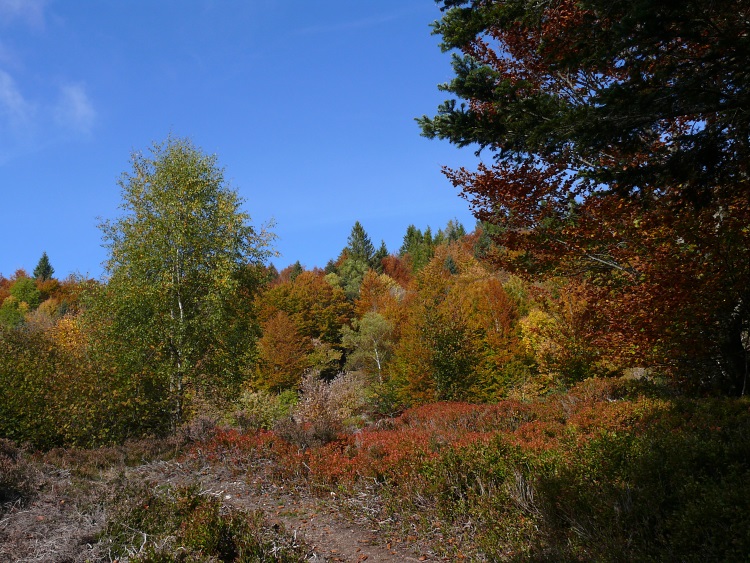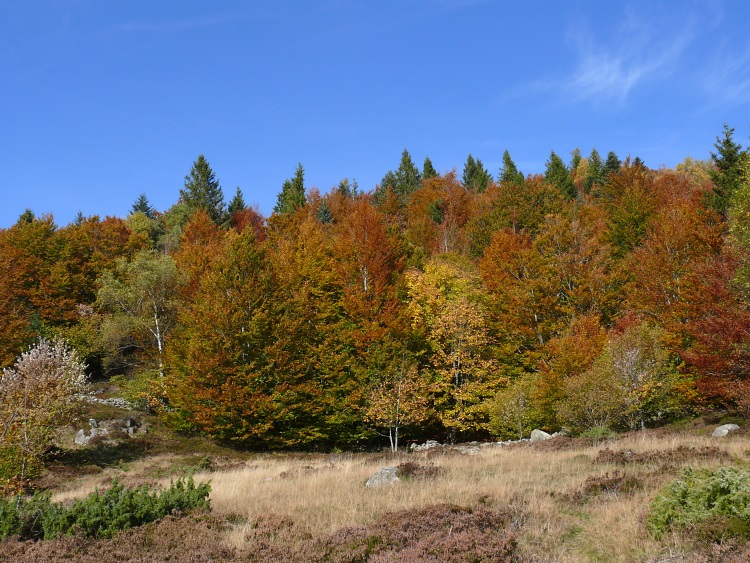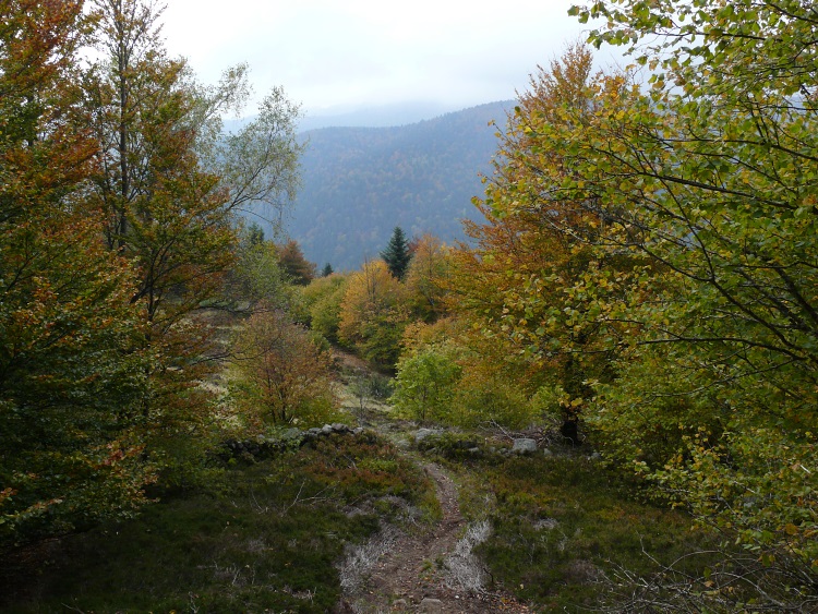 Route | Hütte "Haute Bers" (1110 m) → Tête des Charbonniers → Tête du Moinechamp → Col de Charbonniers → (GR 7) → Col de Morteville → Col de Ronde Tête → Ronde Tête (Rundkopf, 1117 m) → Tête du Moinechamp → Chalet Wasserfallhütte → Lac d´Alfeld → Lac de Sewen → Sewen → Oberbruck → Rimbach près Maseveaux [gelber GPS-Verlauf] |