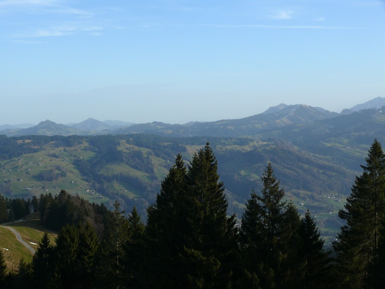 Blick nach Osten mit Hochhamm und Hundwiler Höhi (links) sowie Hochalp und Spitzli (rechts)