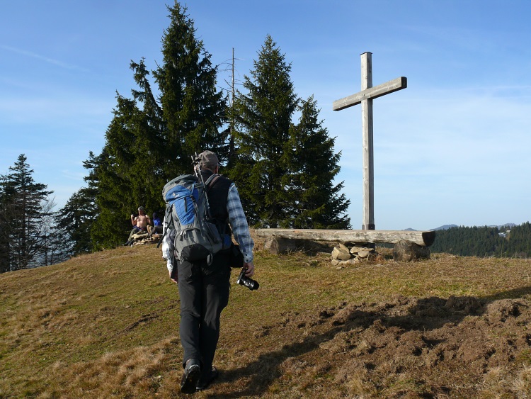 Bald haben wir das Gipfelkreuz bei Punkt 1279, wo wir eine etwas frühe Mittagspause einlegen.