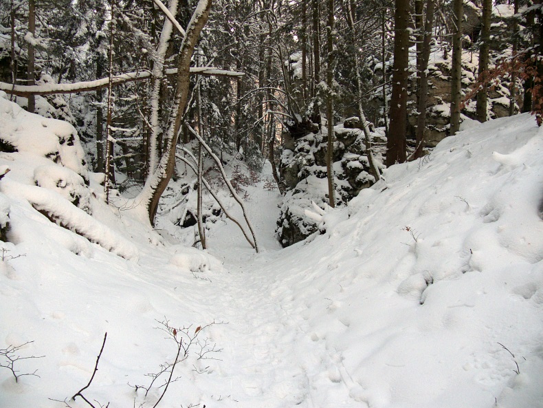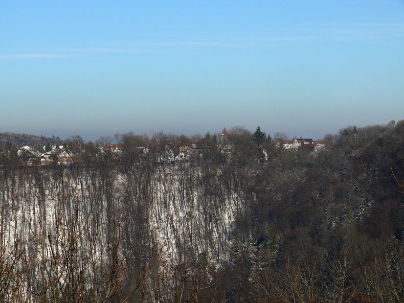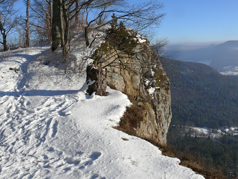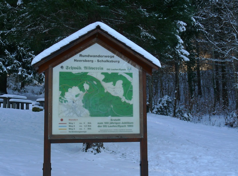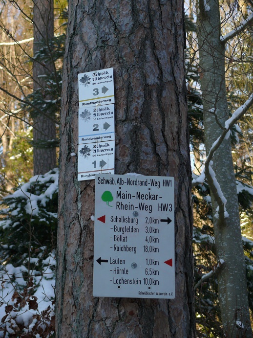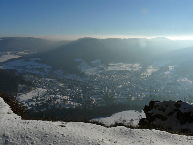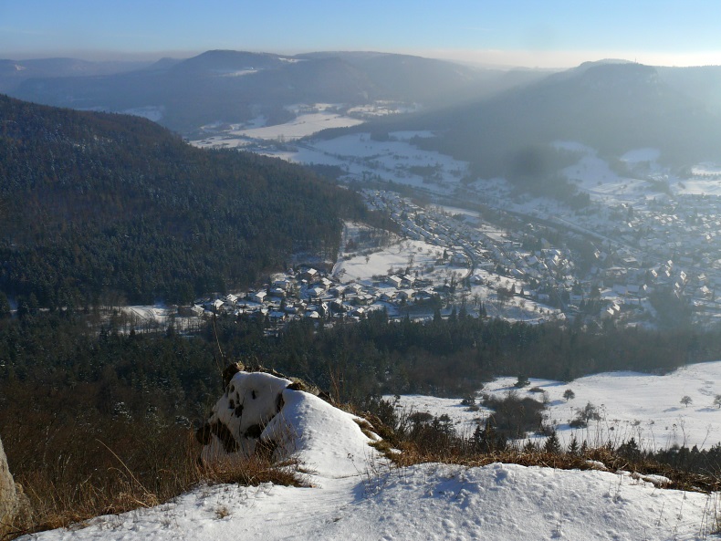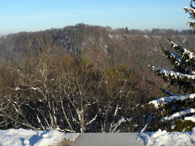 Wegen eines Geschäftstermins mache ich mich bereits um die Mittagszeit vom nebligen Konstanz aus auf den Weg nach Albstadt. Im Donautal und noch darüber hinaus herrscht trotz vorhergesagtem sonnigen Wetter immer noch dasselbe triste Nebelmeer. Erst hinter Nusplingen, wo mich das Navi auf herrliche Abwege zu lotsen versucht, reißt plötzlich der Himmel auf und im Weiteren gibt es nur noch strammes, aber eiskaltes Bilderbuchwetter mit dem berühmten stahlblauen Himmel. Um 14:30 habe ich meinen Termin erledigt, es verbleibt also durchaus noch Zeit für eine kleine Nachmittags-Tour. Ursprünglich war die am Bodensee geplant, denn später soll Regen fallen, der die Straßen in eisglatte Pisten verwandeln soll. Aber in den Nebel zurück will ich einfach nicht. Hier das schöne Wetter auszunutzen ist das Motto der Stunde. Im Zentrum von Albstadt-Laufen bereits sehe ich ein Hinweis auf einen Wanderparkplatz und folge dem Schild, das mich an den Ausgang einer vielversprechenden Schlucht geleitet. Das verschneite Sträßchen steil hoch zum Parkplatz will ich mir dank fehlender Ortskenntnisse nicht zumuten, so dass ich mein Fahrzeug schon früher an einem geeigneten Punkt für ein paar Stunden abstelle - und los gehts.
