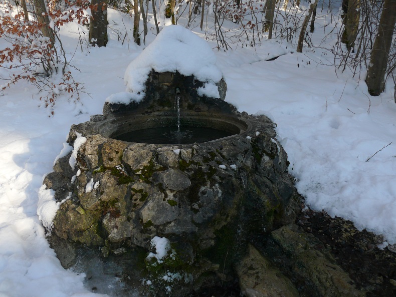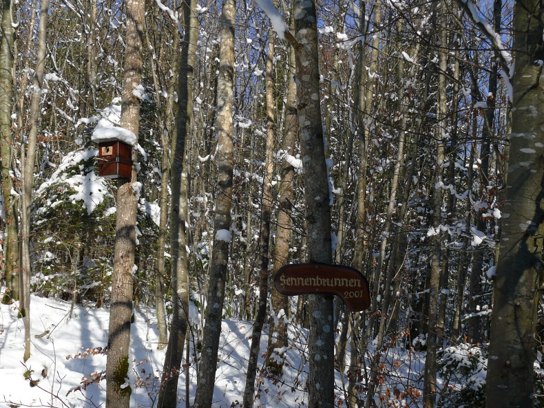 Wenig später trifft man auf den 2001 erneuerten Sennenbrunnen, einer eingefassten Quelle im Quellgebiet des Eltschbaches, ein kurzer Bach, der in die Eysach fließt.