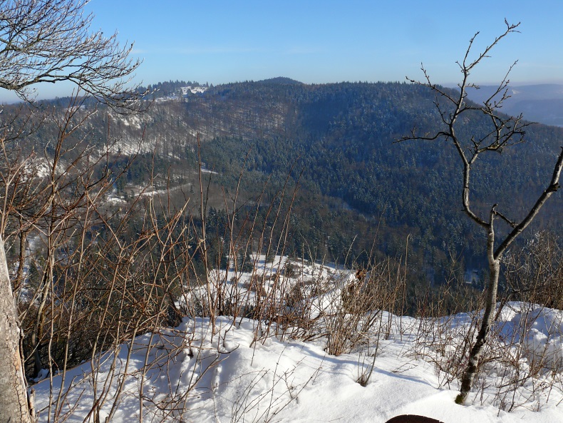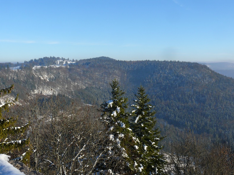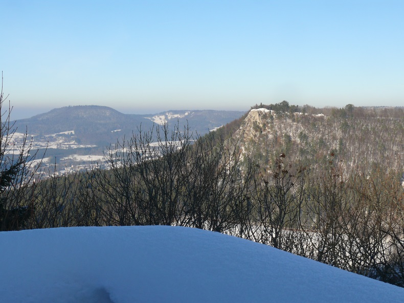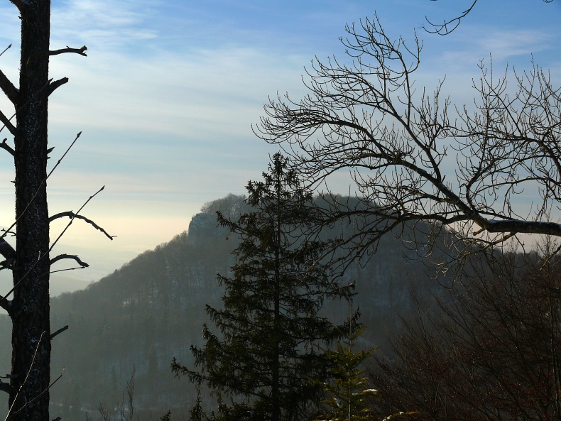 Blick zurück: links ist der Fels mit der Ruine Schalksburg zu sehen.
