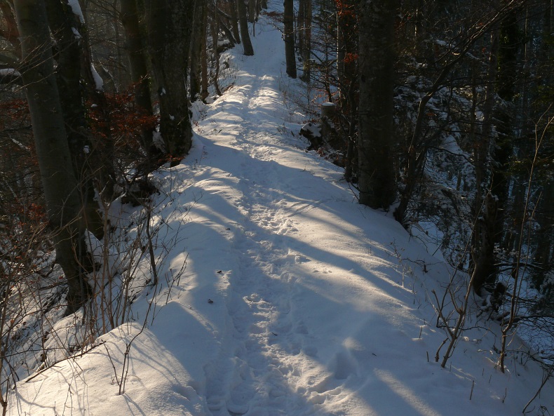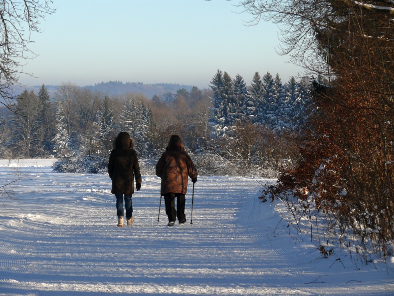 Bald ist auch dieser Weg zu Ende und - welche Überraschung - ich befinde mich auf einer Hochebene, die an diesem kalten Wintertag auch von vielen Langläufern und Wanderern genutzt wird. Für beide Parteien gibt es Loipen und gebahnte Winterwanderwege. Vorbei ist die Abgeschiedenheit!