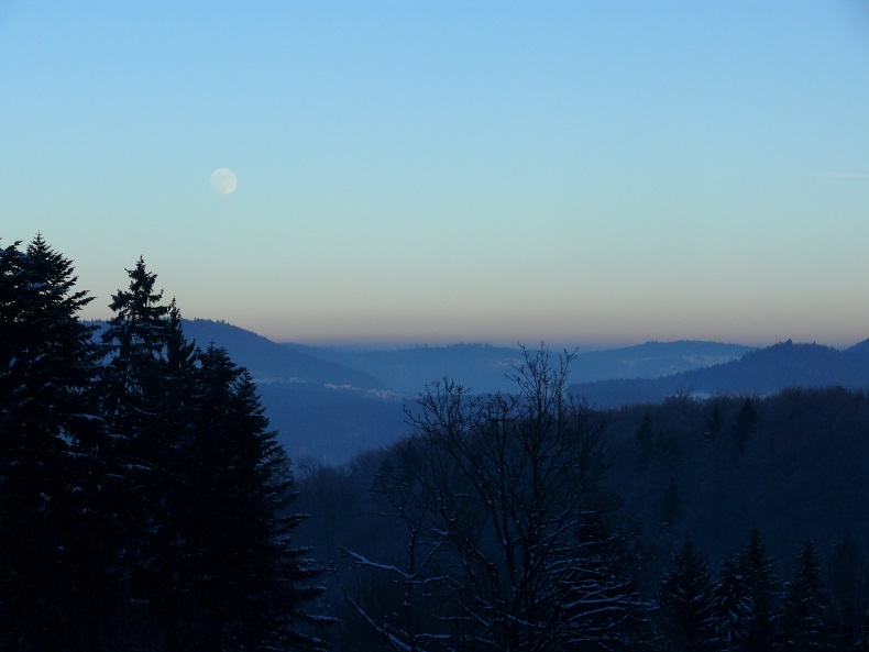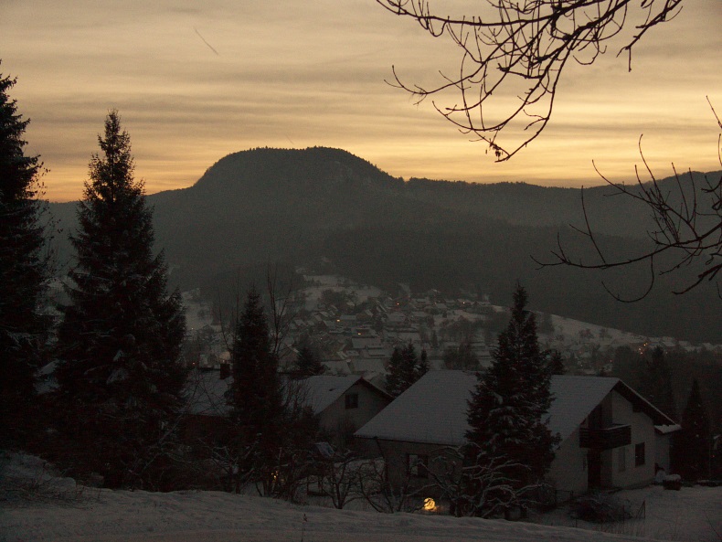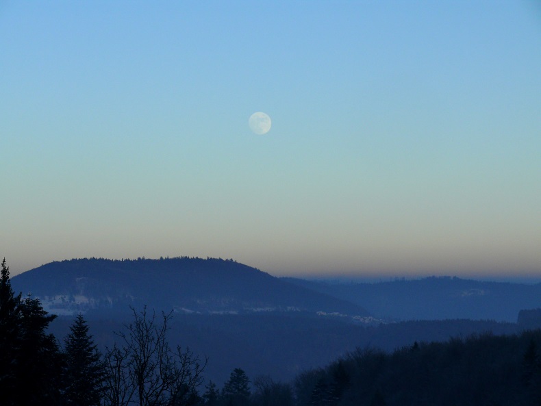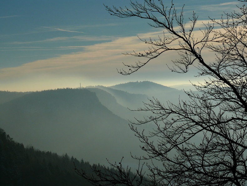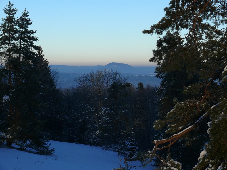 Derselbe Blick mit dem etwas weniger baumbestandenen Heersberg (links hinten, 954 m)