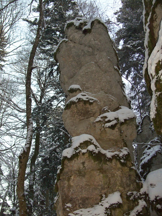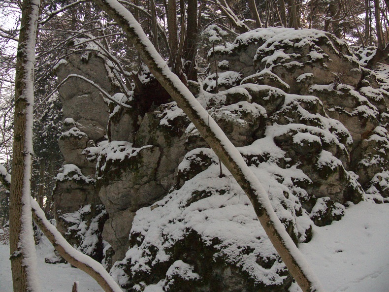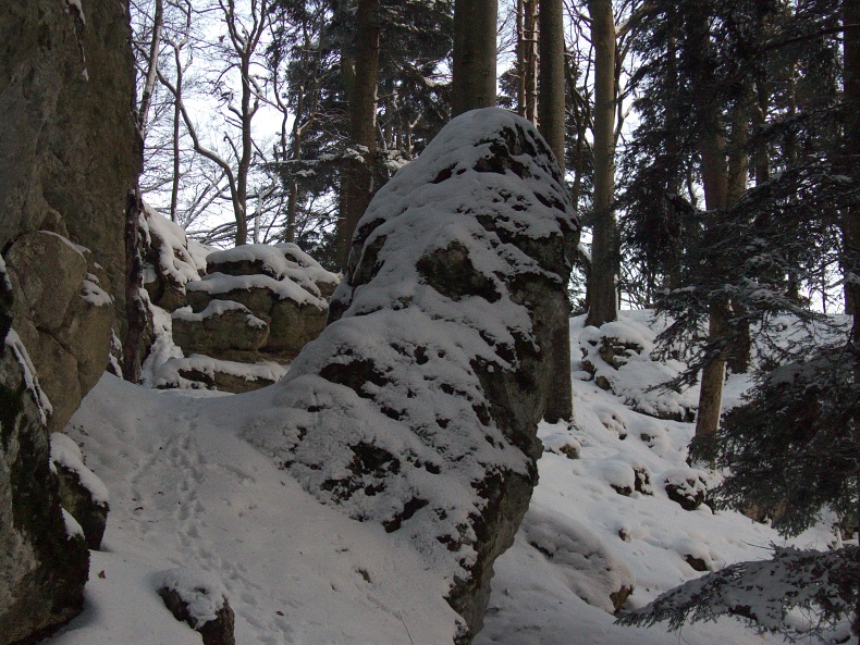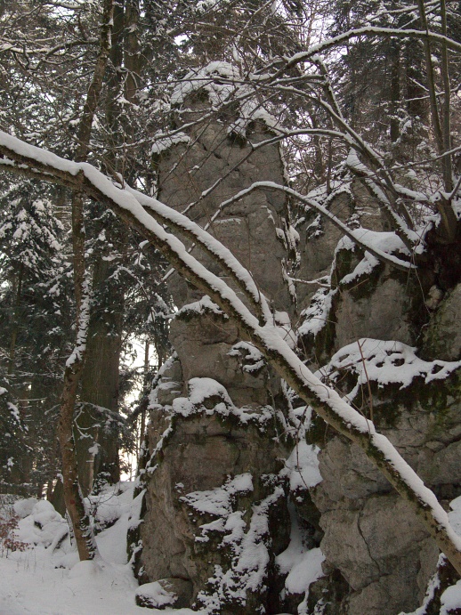 Nach kurzem Abstieg führt eine Abzweigung zu dem besagten Felsenmeer, das nicht zu verfehlen und schon gar nicht zu verkennen ist mit seinen Türmen und aufeinandergetürmten Felsbrocken.