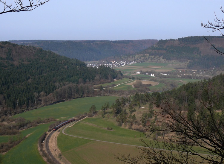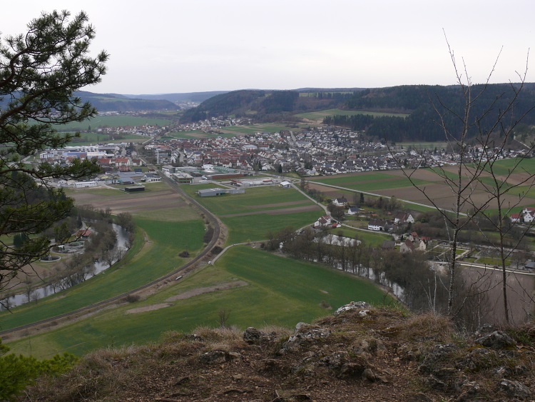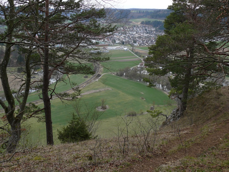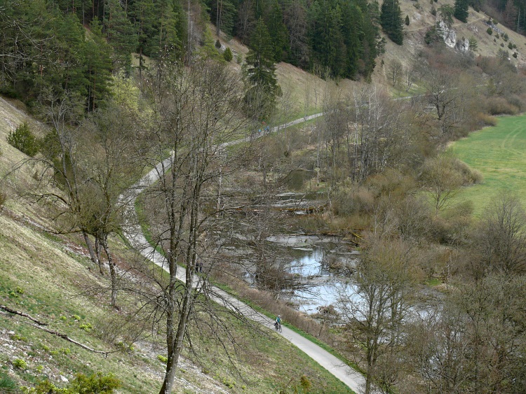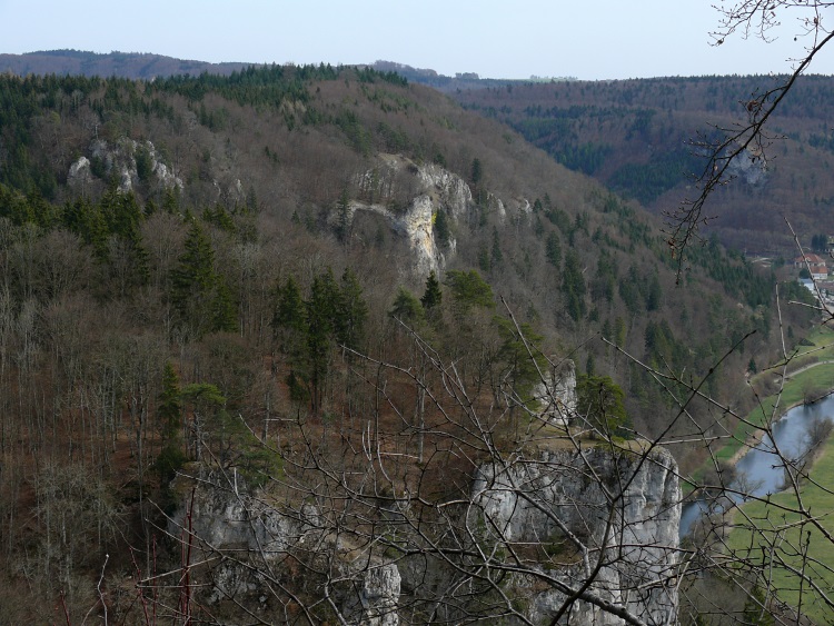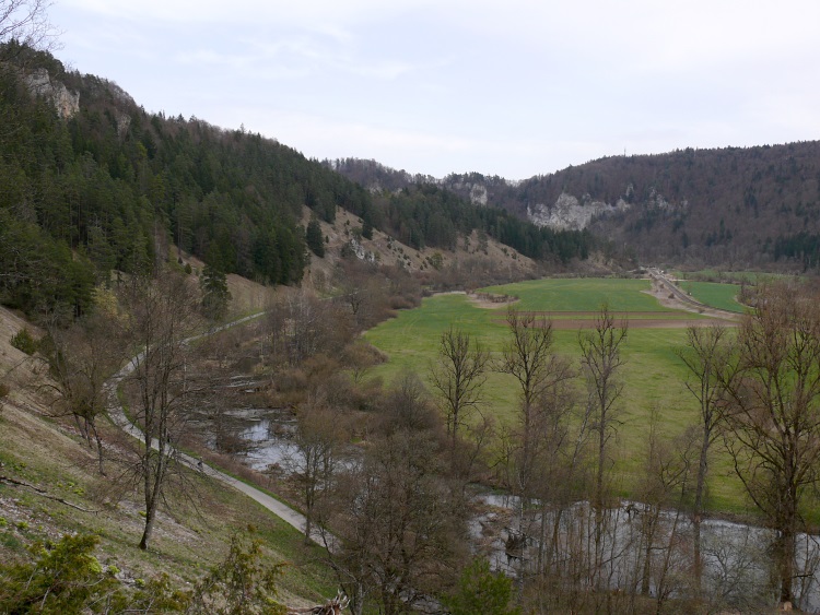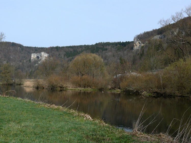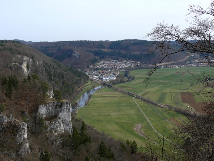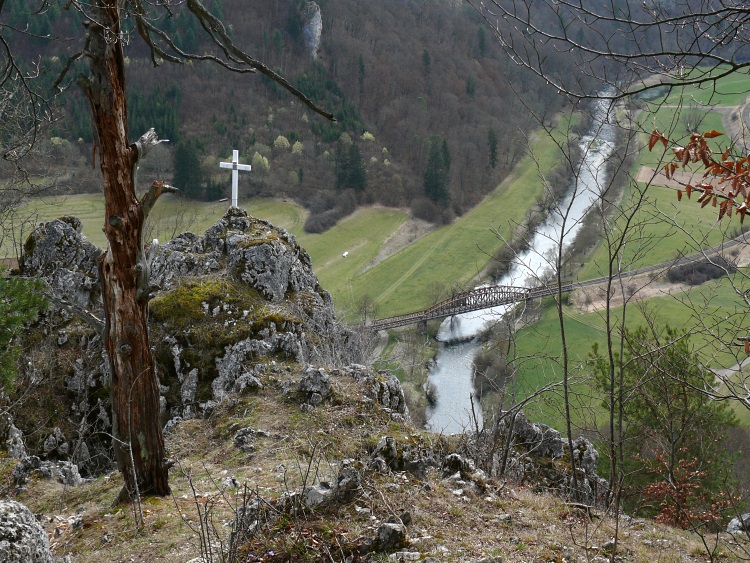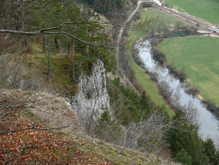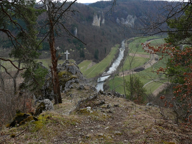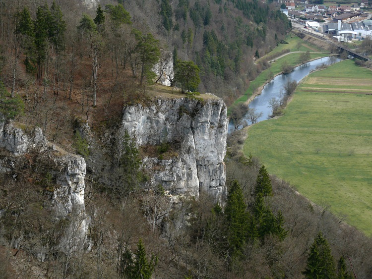 Route | Wanderparkplatz bei Bergsteig (690 m) → Rissfels → Ruine Altfridingen → Fridingen → Aussichtsturm bei Fridingen → Breiter Fels (756 m) → Gelber Fels → Mühlheim → Wirtenbühl → Bergsteig |