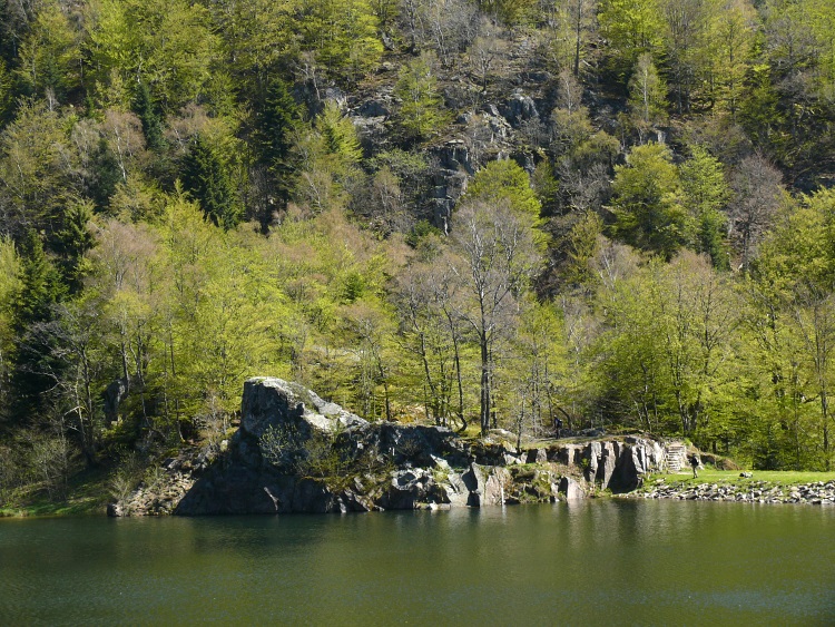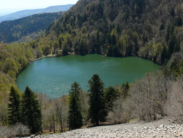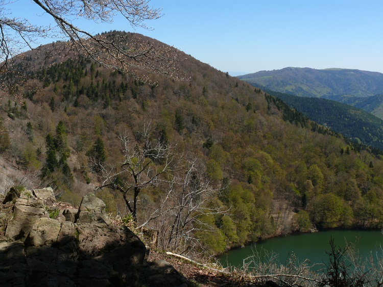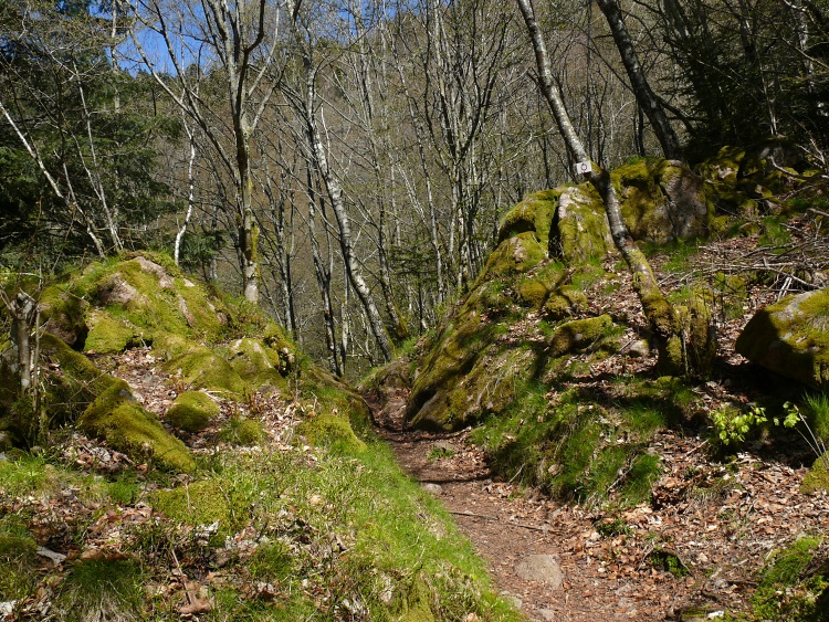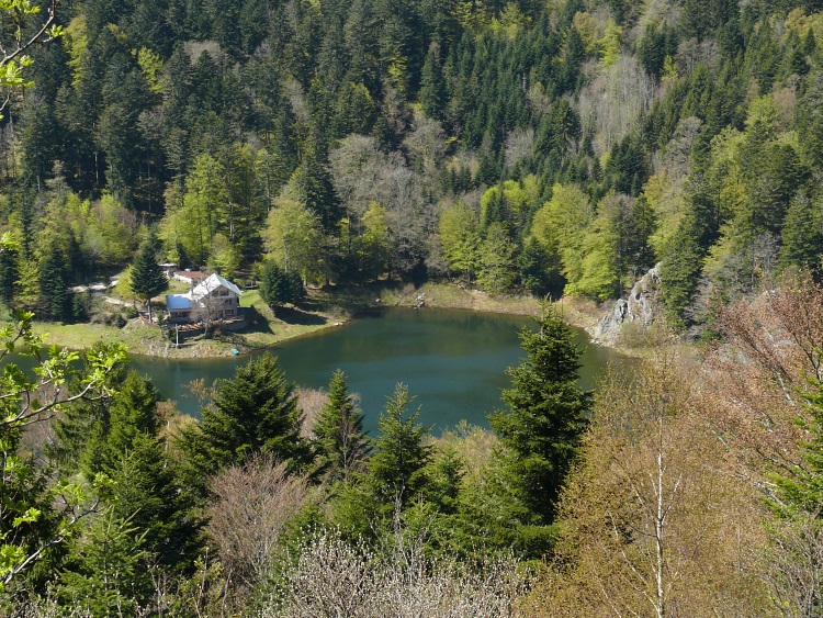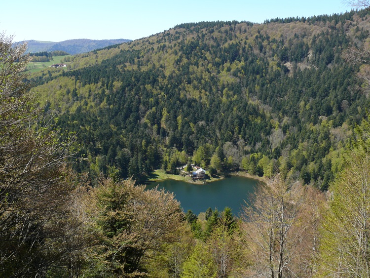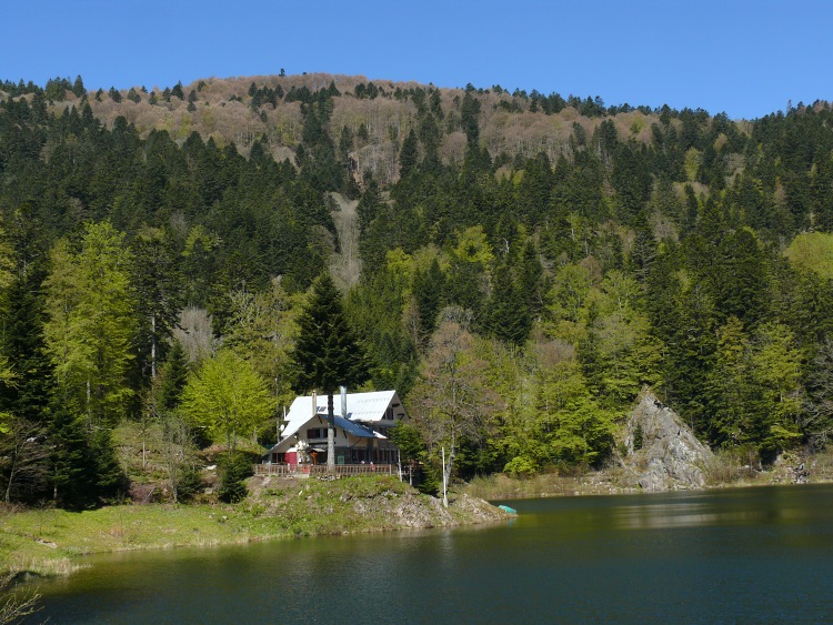 Route | Wanderparkplatz bei Rimbach près Maseveaux → Ferme-auberge le Gresson Moyen → Neuweiher → Lac des Perches (Sternsee) → Tête des Perches (1223 m) → Haute Bers (1252 m) → Col des Charbonniers → Chalet de la Petite Chaume → Lichtung am Tête du Moinechamp (ca. 1100 m) |