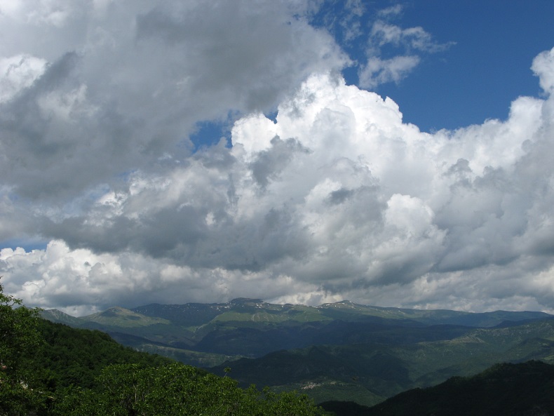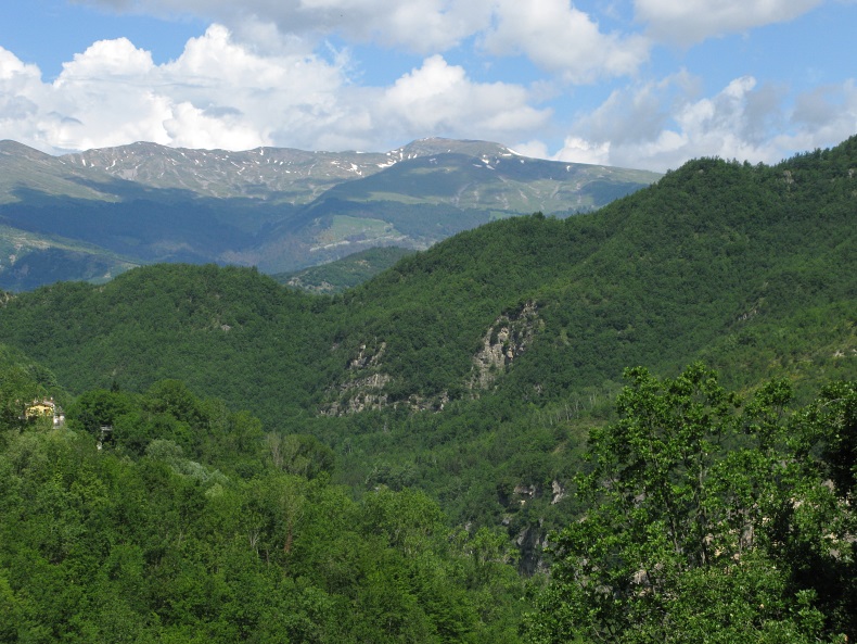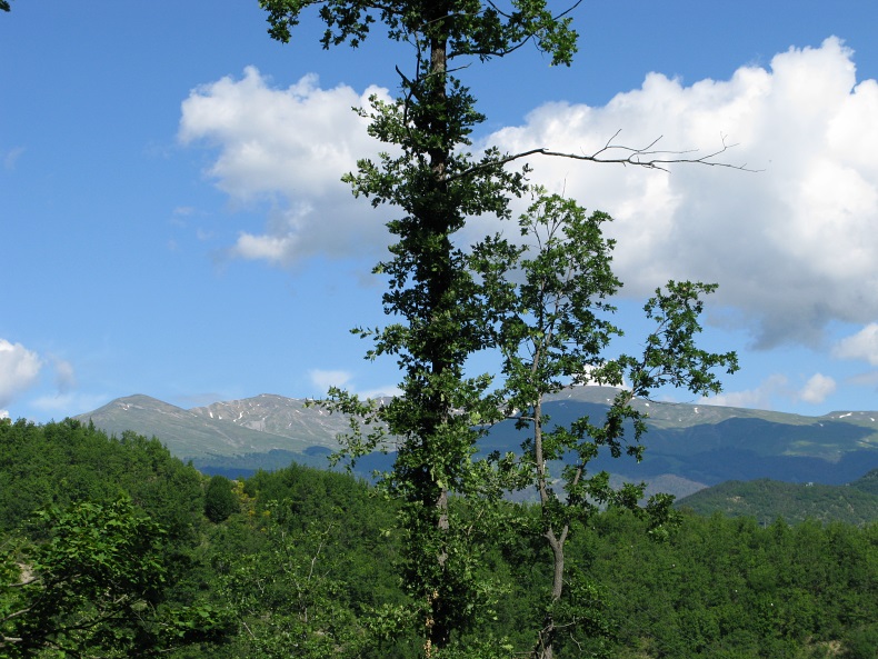 Lange Zeit führt nun ein guter Weg durch schönen Mischwald, bis endlich in der Nähe von Prato di Tivo die Sicht wieder etwas freier wird.