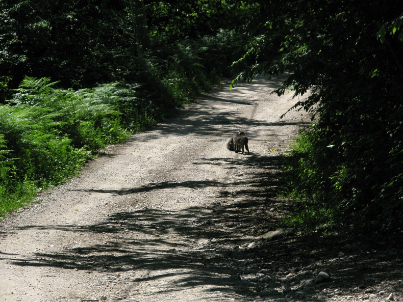 Ich begebe mich nun auf den Weg nach Pietracamela. Nach einigen Hunderten von Metern auf dem Forstweg biegt ein Trampelpfad ab, den ich nun einschlage, in der Hoffnung hier den Weg nach Pietracamela abzukürzen zu können oder zumindest den Forstweg zu vermeiden.