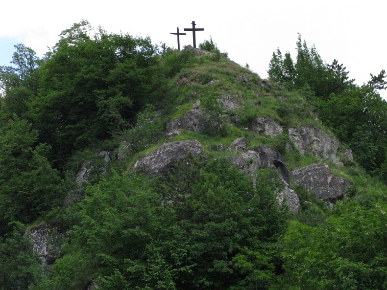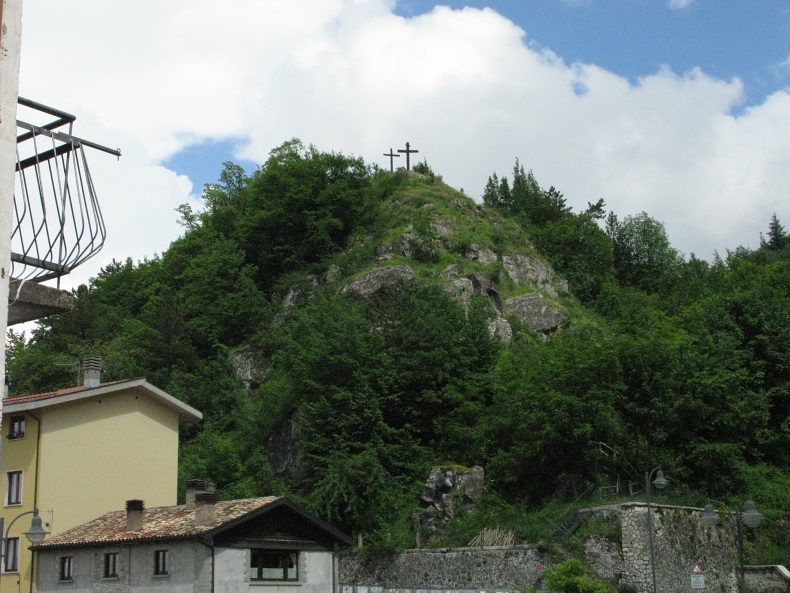 Am Eingang zum alten Ortskern befindet sich ein größerer Platz, von dem aus auch diese "Gipfel"-kreuze zu sehen sind.