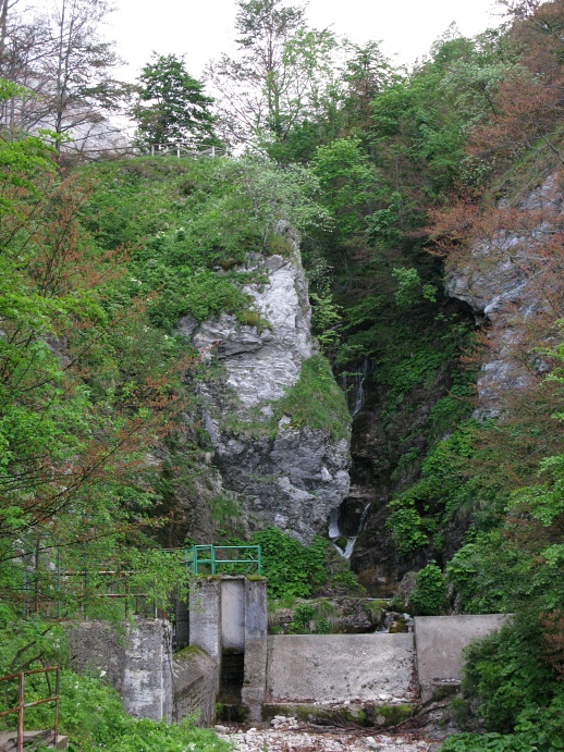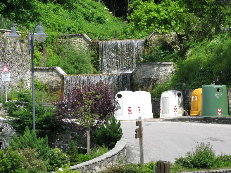 Kurz oberhalb der Einfassung stürzt das Wasser des Baches in vielen Kaskaden durch die enge Schlucht. Auf einem Felsvorsprung ist hier auch eine gefahrlose Annäherung an die "Le Cascate Rio Arno" genannten Wasserfall möglich.