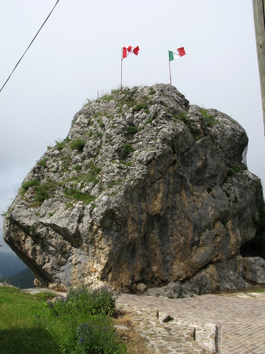 Pietracamela; der Weiterweg führt schließlich an dem beflaggten Felsen, einer schönen Aussichtskanzel, vorbei.