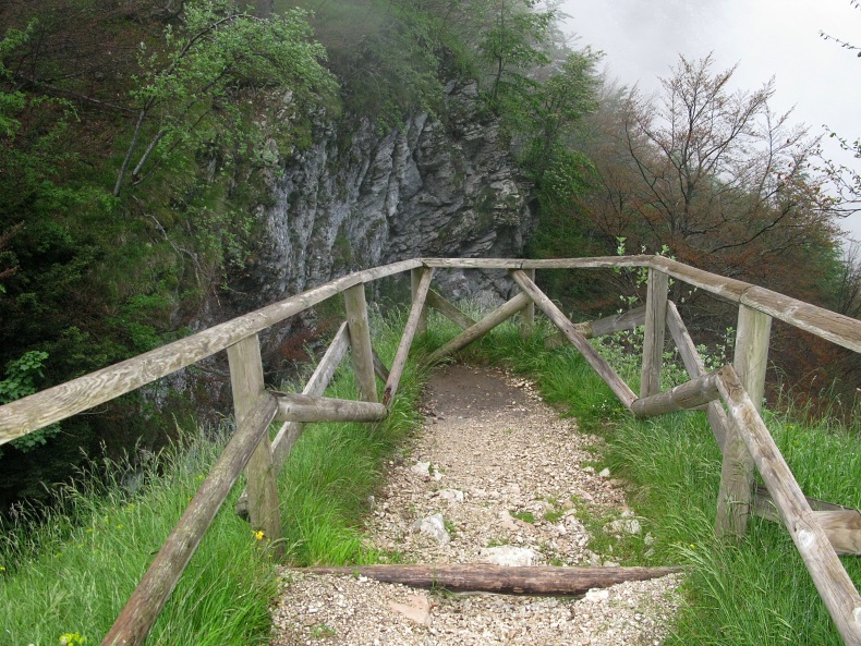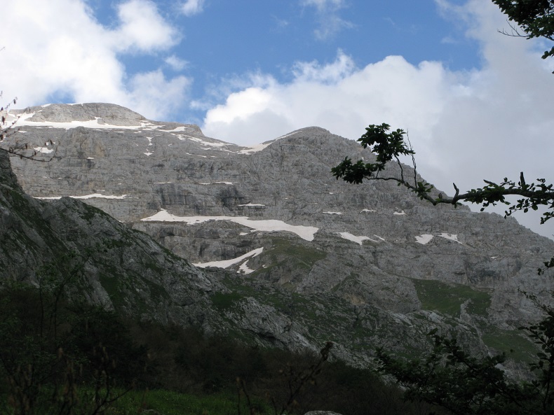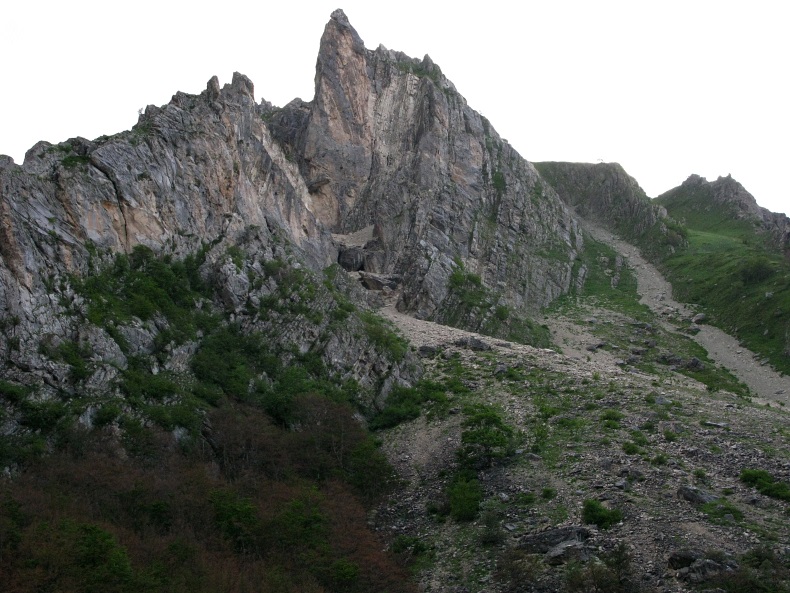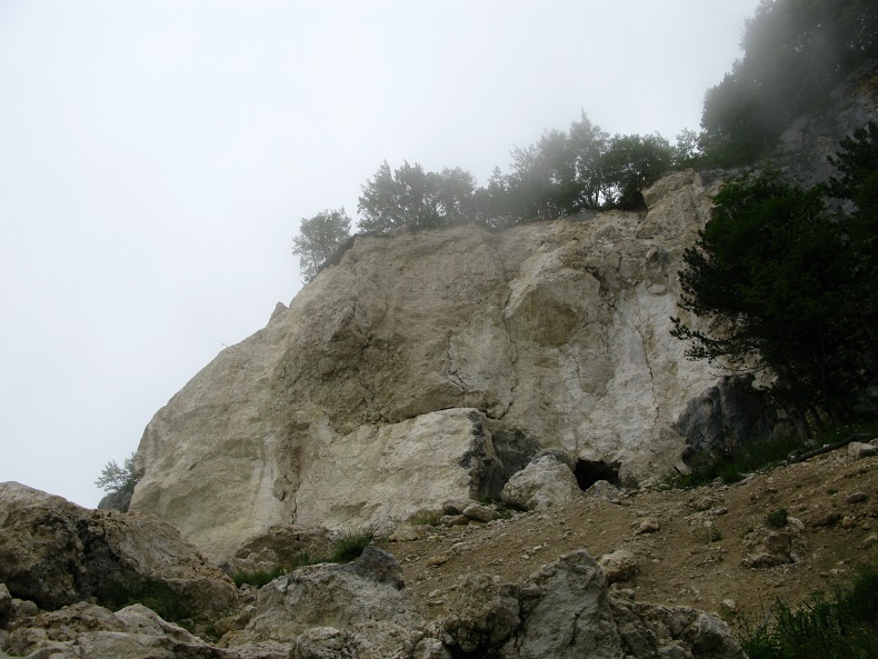 An dieser Felswand entlang führt der Weg, der durch Hangrutsche mehrmals überdeckt ist.