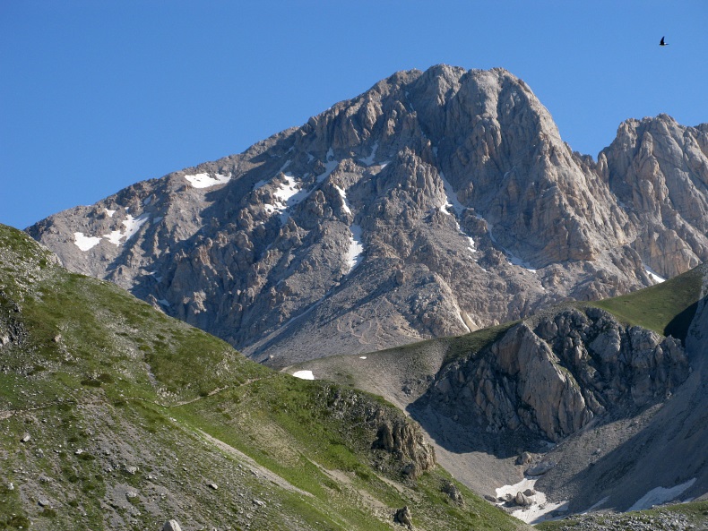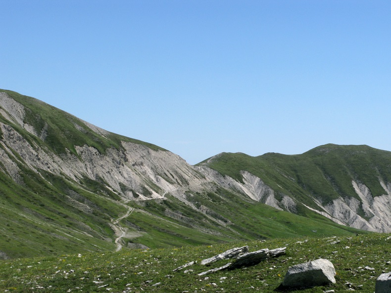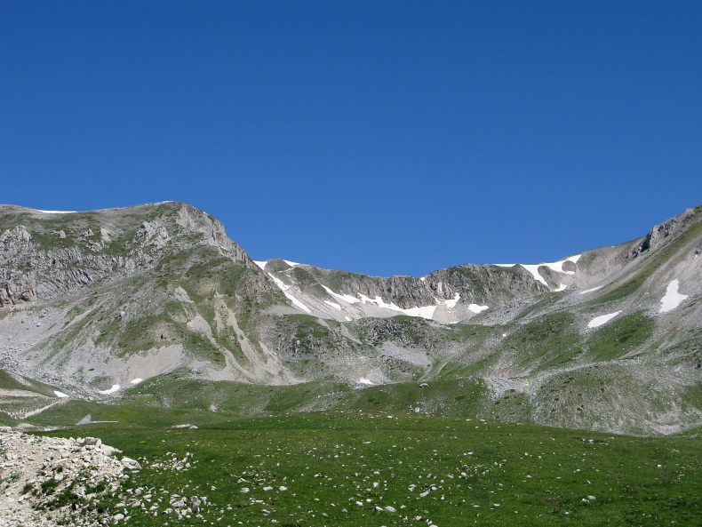 Etwa in der Bildmitte befindet sich der Sattel "Sella di Monti Aquila".