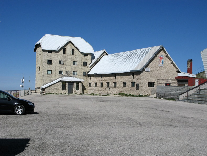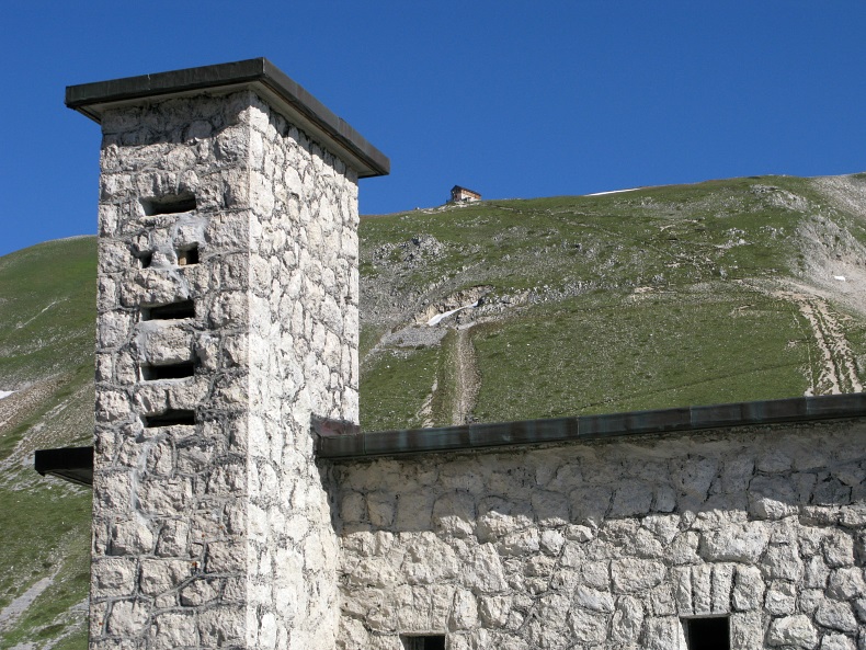 Das Rifugio Duca degli Abruzzi auf dem Bergkamm