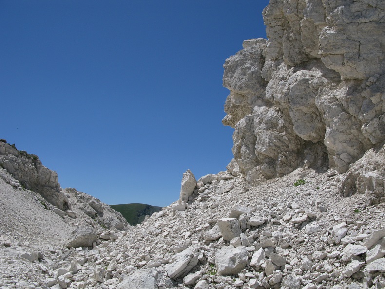 Im Anstieg zum Vado di Corno weglos über die Karstflanke.