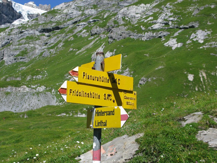 Route | Fridolinshütte → Pass am Bifertengrätli → Hinter Stäfeli → Ober Sand → Hinter Sand → Unter Sand → Pantenbrücke → Tierfed |