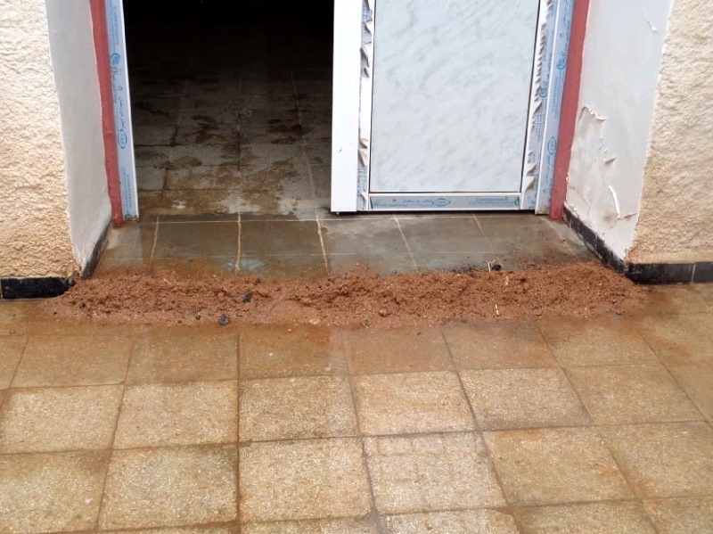 Improvisierter Sperrdamm gegen die "Regenflut" an den Eingängen zum Museum