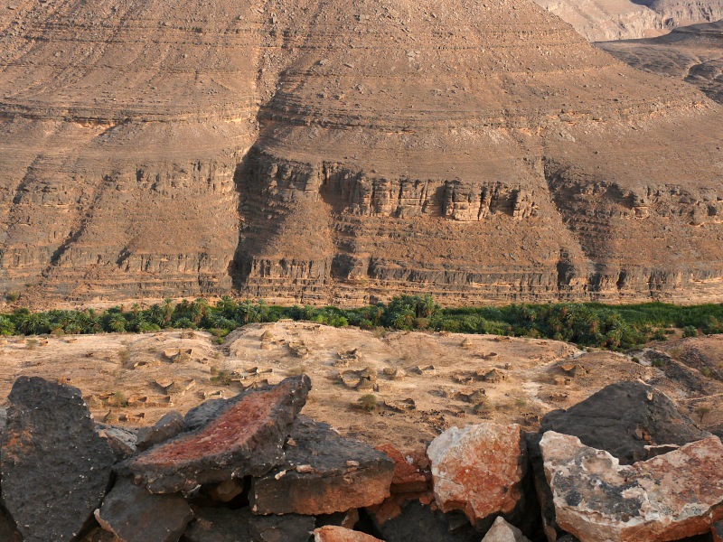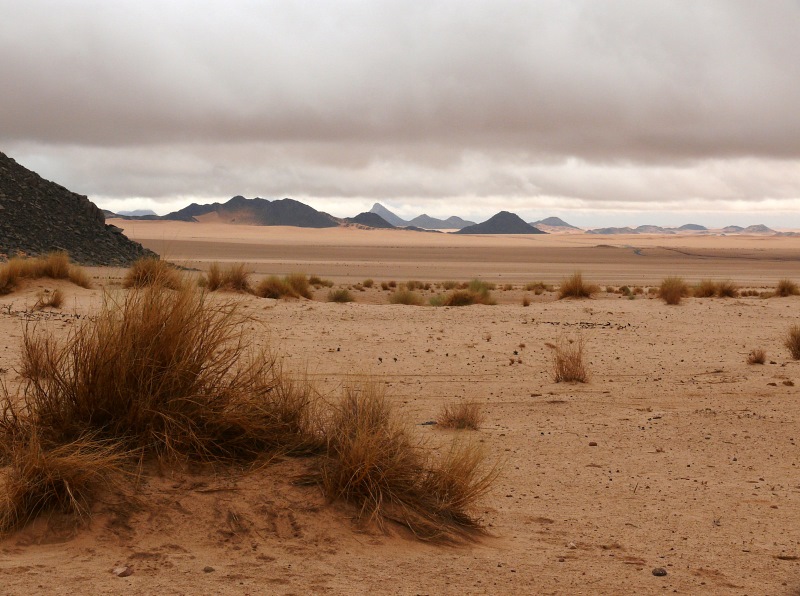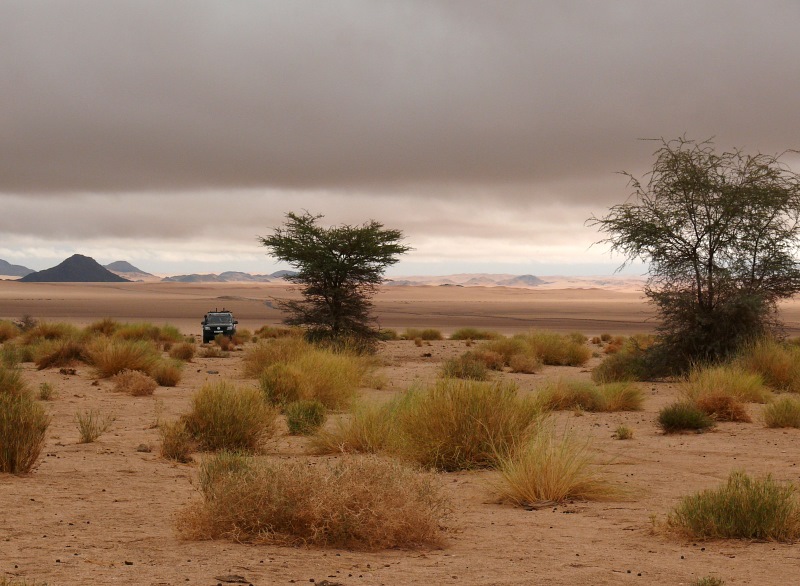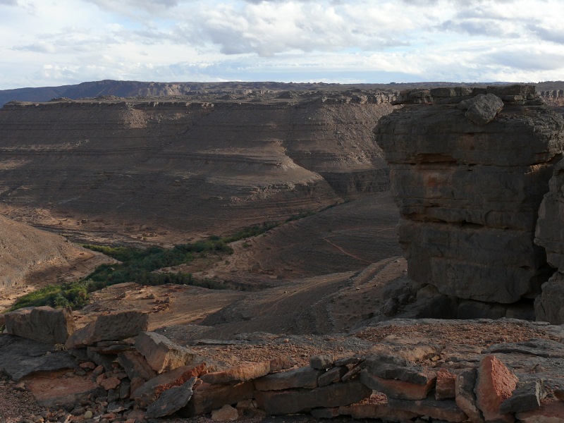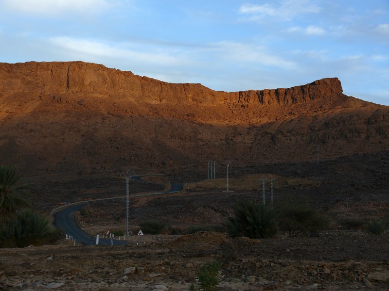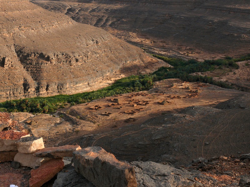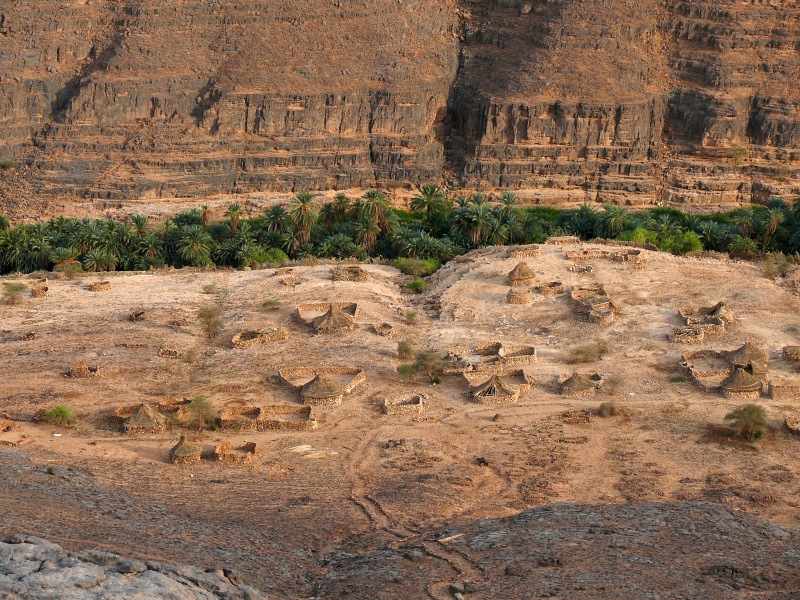 Ein Aussichtspunkt kurz vor Iherir erlaubtt einen guten Überblick über die Oase von Idaran mit ihren (meist verwilderten) Dattelpalmen und (nur teilweise noch genutzten) strohgedeckten Hütten.