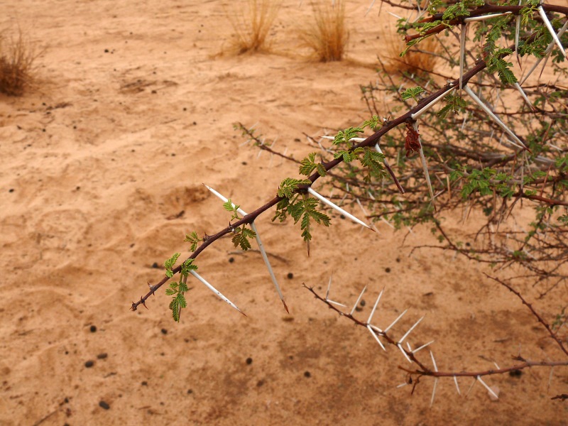 Akaziendornen, vor denen man sich durchaus in Acht nehmen sollte, wenn Zweige am Boden liegen.