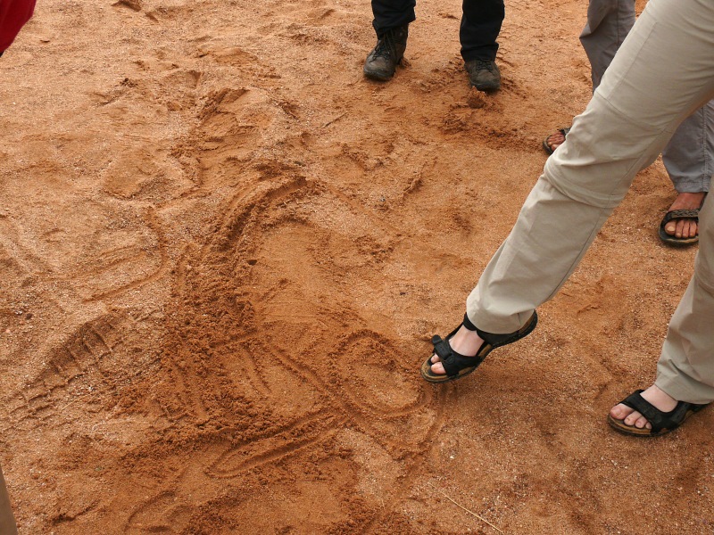 Der Sand ist hervorragend als "Schultafel" geeignet, um das Reiseprogramm der kommenden Tage aufzuzeichen. Das Programm selbst ist allerdings nicht auf Sand gebaut!