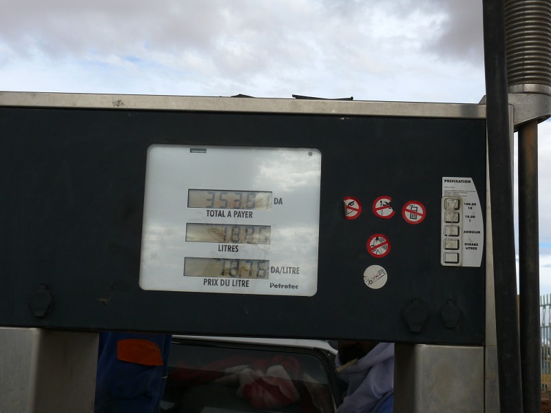 18.76 Liter Diesel kosten 353.81 algerische Dinar, umgerechnet knapp 3 Euro